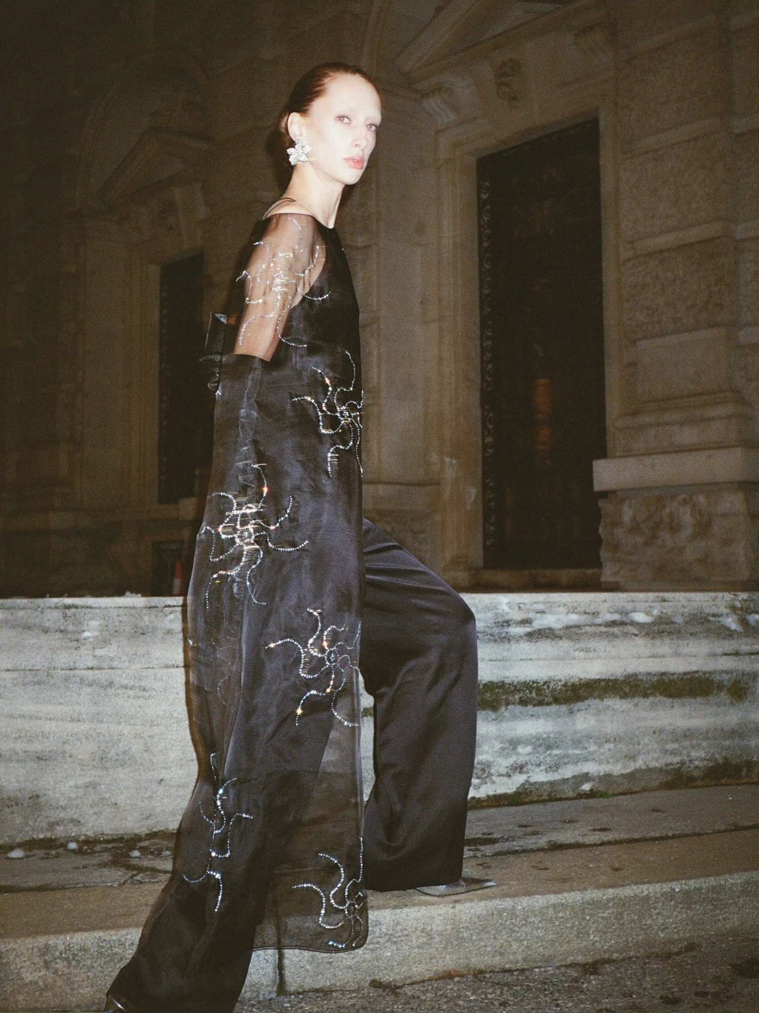 Midnight Gala – це капсульна колекція від GUDU, створена для вечорів, коли стиль стає головною заявою. Колекція поєднує глибокі нічні тони з архітектурними силуетами та фактурами, що взаємодіють зі світлом: від делікатного мерехтіння леліток до глянцевої шкіри та м’яких матових поверхонь. У центрі лінійки – форми, які підкреслюють тіло без надмірностей: об’ємні лінії, вишукана асиметрія та стримана драма. Кожен образ створений для того, щоб розкриватися в русі, у сяйві вечірнього освітлення й на тлі нічних подій.
