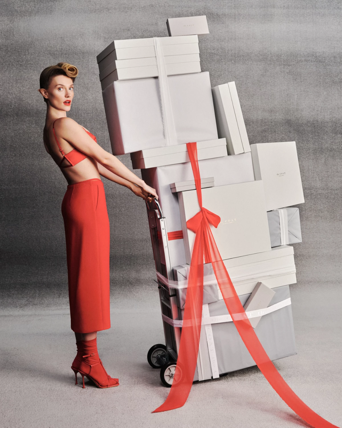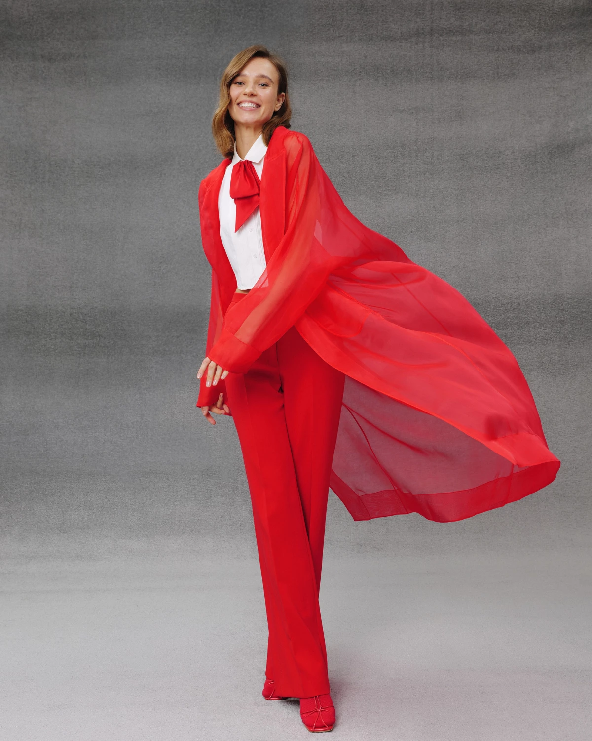 Red Drop – нова святкова колекція The Coat by Katya Silchenko, у якій бренд традиційно працює з формою, стриманістю та змістом. В основі колекції – вивірені силуети, практичні матеріали та чисті лінії, що створюють відчуття зібраності й впевненості. Червоний акцент з’являється дозовано, майже символічно, працюючи як знак у стриманій палітрі. Ключовими кольорами Red Drop стали сірий і червоний – поєднання раціонального та емоційного, спокою й внутрішньої сили. До лінійки увійшли трикотажні поло, вовняні жакети, корсети та кейпи, мідіспідниці, сорочки, сукні й тренч із органзи. Колекція легко інтегрується в повсякденний гардероб, водночас зберігаючи святковий настрій.