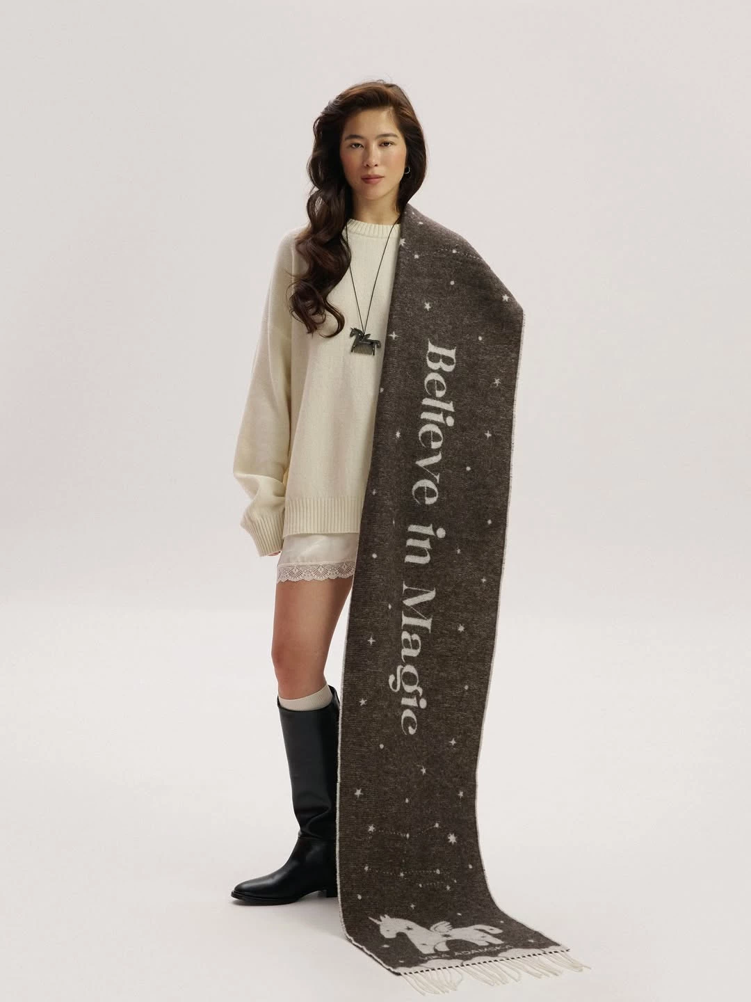 Святкова колекція Believe in Magic – про дитячу віру в дива, тепло зимових вечорів і маленьку магію, яку хочеться зберегти. Напередодні року Коня Vika Adamska оживляють казкові символи, перетворюючи святковий настрій на реальність. У колекції – затишні піжами, теплі светри, шарфи, шкарпетки, капці, свічки, солодкі подарункові бокси та аксесуари. Головний мотив лінійки – фраза Believe in Magic, яка проходить крізь усі вироби, а центральним акцентом став м’який шарф із магічним єдинорогом у трьох відтінках. Окрема деталь – іменні піжами з можливістю кастомізації.