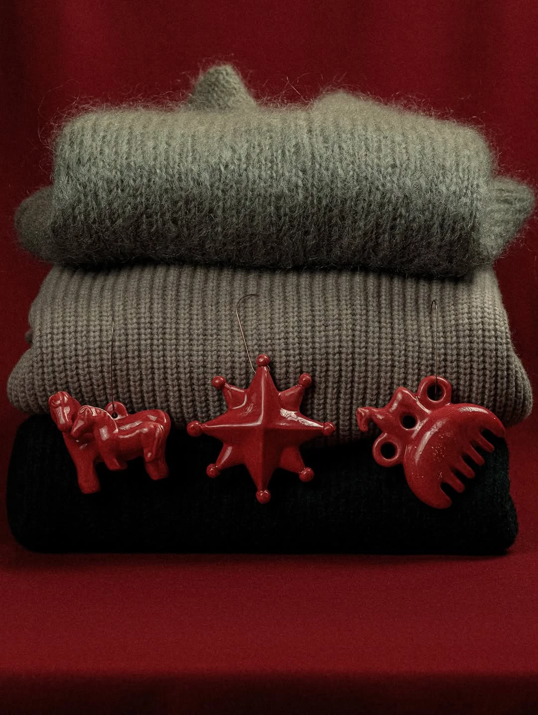 Український бренд MYCH Objects представив різдвяну колекцію, до якої увійшли розписані вручну керамічні тарілки, підсвічники-скульптури, ювелірні вироби, ошатні ранери з щільної вовни та ялинкові прикраси. Усі предмети об’єднані символом прийдешнього 2026 року – коником. Сет ялинкових прикрас "Ніч удома" складається з семи іграшок: різдвяних зірок, лаконічних чотирикутників та коників. Особливу увагу варто звернути на парні коники, а також підставки у формі коників, які допомагають акуратно тримати прибори під час святкової трапези.