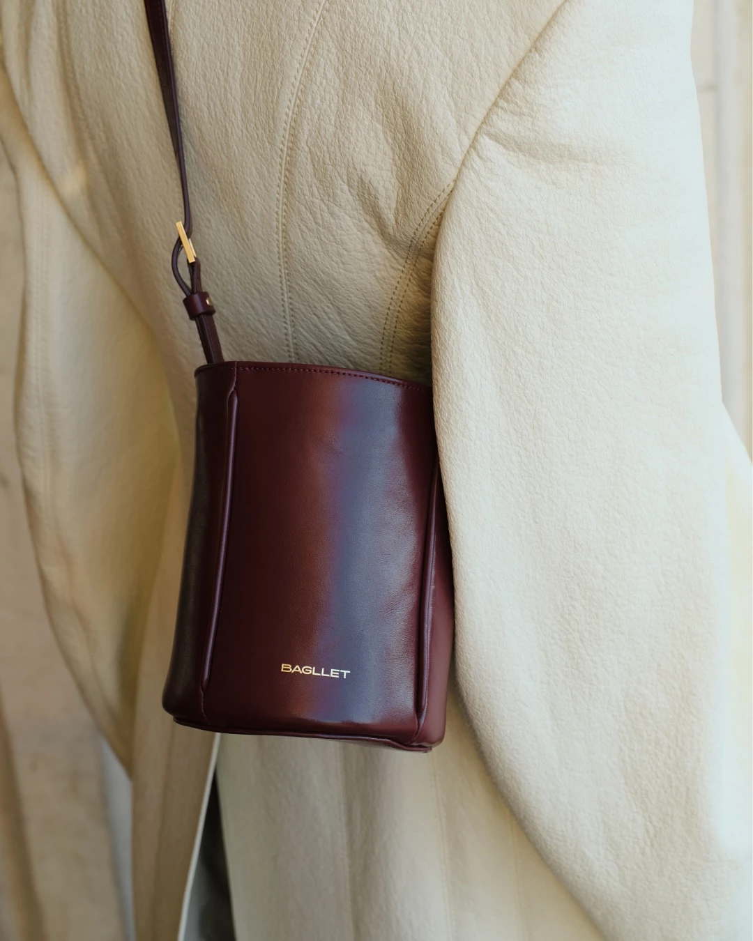 Аксесуари Bagllet – про спокій, баланс і виваженість. Геометрія міських вулиць, відблиски на склі та тіні надихнули бренд створити мінімалістичні сумки з м’якої шкіри Trentino. Особлива зірка дропу – міні-бакет BG209, де структурована циліндрична форма поєднується з ніжною текстурою шкіри та ледь помітним глянцем. Кожна сумка відображає точність, продумані пропорції та стриману елегантність, яка не підвладна трендам.
