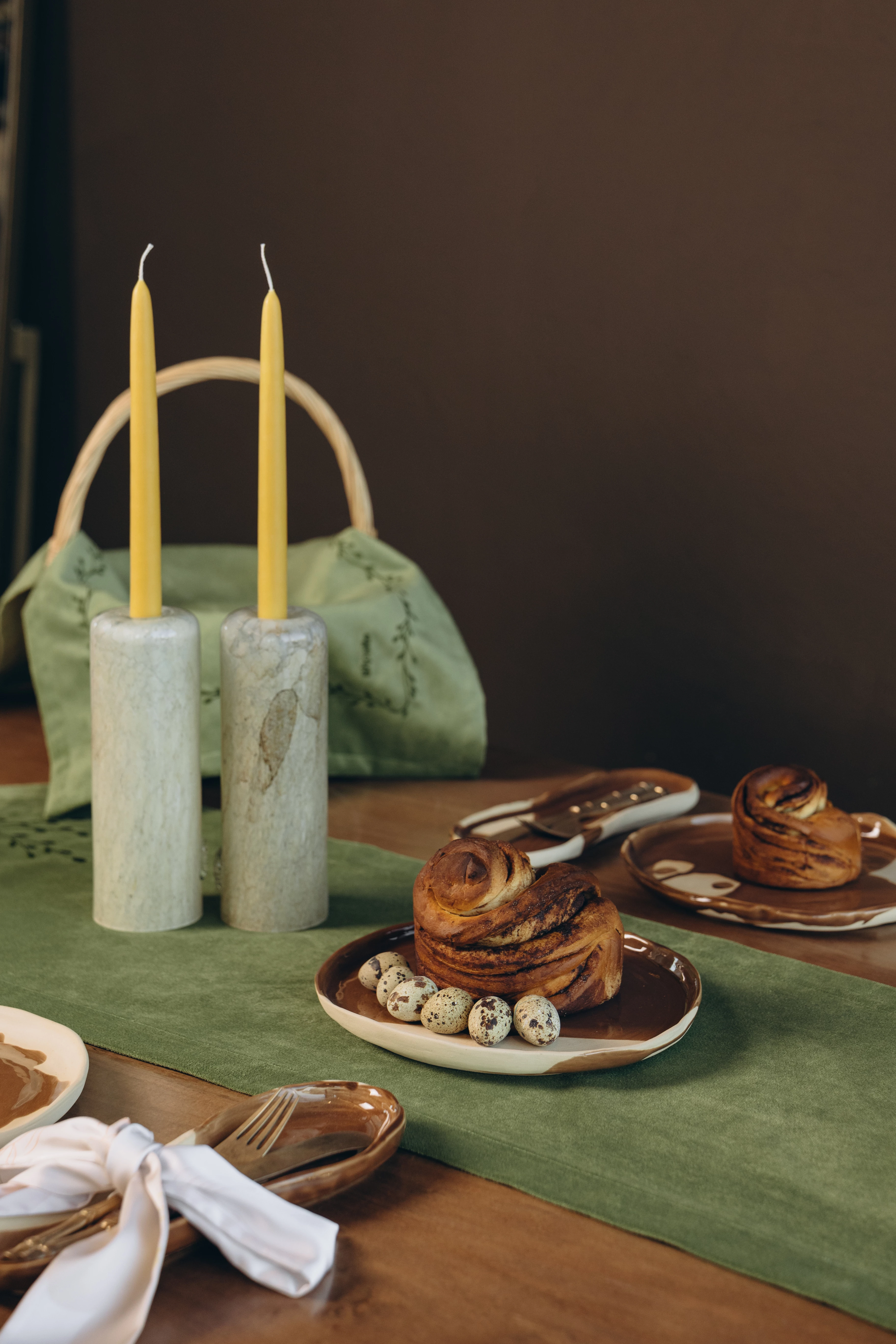 Цього року два закарпатські бренди Shpalta та MYCH Objects об'єдналися напередодні великодніх свят — текстиль перших став органічним доповненням до кераміки других. Разом — це ідеальний декор для святкового столу. Так, центральним його елементом став ранер Shpalta, прикрашений гілочками верби, що символізує пробудження весни, світло і новий початок. Кераміка MYCH Objects в свою чергу натхненна таїнством приготування тіста. У колекцію увійшли як бестселери бренду у нових весняних кольорах, наприклад, свічки SONE, так і нові вироби — коси та пташенятка порт-куто, пара птахів-свічників, як символи дому, сімʼї, теплих моментів та віри.