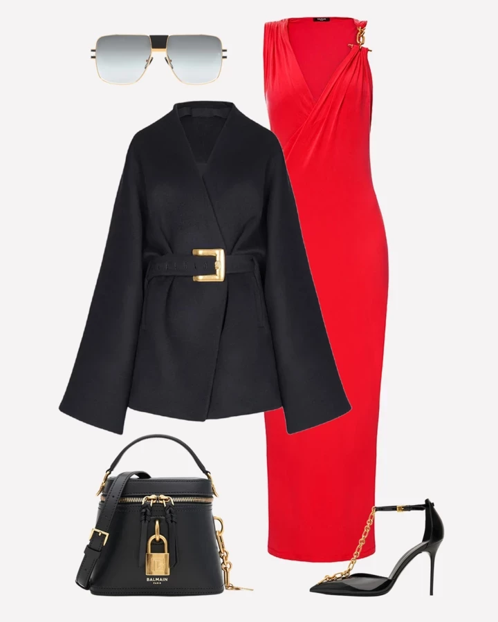 Червона сукня — беззаперечна класика жіночого гардероба. Вона доречна за будь-яких обставин, а для елегантних і романтичних святкових образів — майже безпрограшний вибір. Така сукня легко стає центральним акцентом вбрання, яке варто доповнити пальтом-кімоно та вишуканими туфлями з гострим носком і декоративними деталями.