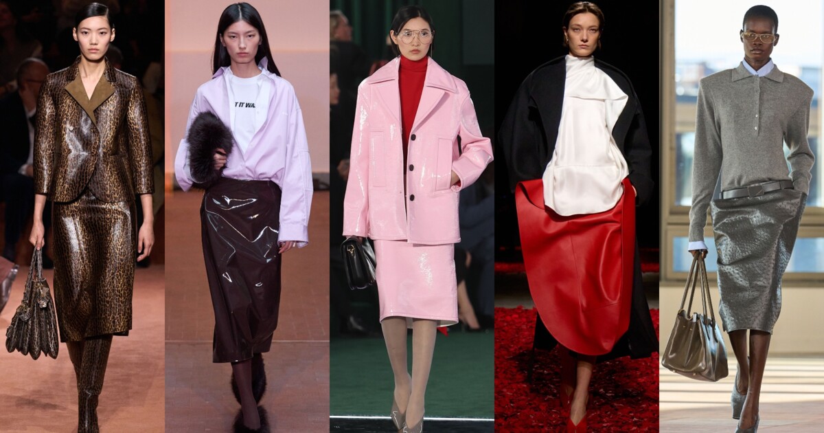 Пурпурові, жовті, зелені та пастельні шкіряні спідниці додають свіжого виміру класичному матеріалу. Це сміливий вибір для тих, хто любить експериментувати та виходити за межі монохромних образів. Натхнення варто шукати в осінньо-зимових колекціях Zomer, Gucci та Miu Miu.
