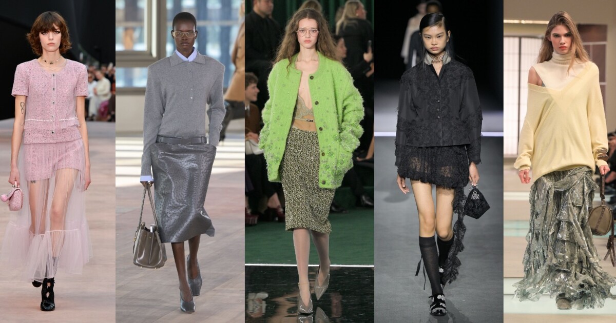 Прийдешнього сезону спідниці отримають особливу увагу, і серед усіх їхніх варіацій є силует, що беззаперечно домінує. Його можна було побачити в колекціях Gucci, Saint Laurent, Stella McCartney, Fendi, Prada та Miu Miu. Ця добре знайома спідниця-олівець повертається в оновленому вигляді: з низькою посадкою, кишенями та несподіваними комбінаціями — наприклад, у поєднанні з об’ємними светрами. Є місце і для фантазії: хутро, пір’я, лелітки, інкрустації коштовним камінням. Але абсолютний фаворит сезону — шкіра.