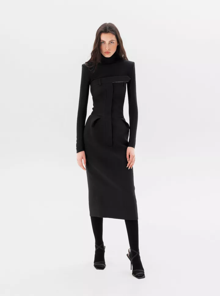 ELENAREVAНосити сукні в холодні місяці можна й навіть треба. Щоб не змерзнути, вибирайте затишні трикотажні сукні з довгими рукавами J'ammeme та The Coat by Katya Silchenko, доповнюючи образ високими чоботами; комбінуйте короткі сукні Arutinova зі щільними колготками або поєднуйте невагомі образи Tote в пастельних відтінках з водолазками. Ви також можете використати популярний стилістичний прийом — й одягнути сукню поверх штанів, як це пропонують робити Elenareva та Litkovskaya. Крім того, такі образи вподобали багато які знаменитості та streetstyle-зірки. Більше прикладів стилізації дивіться тут.