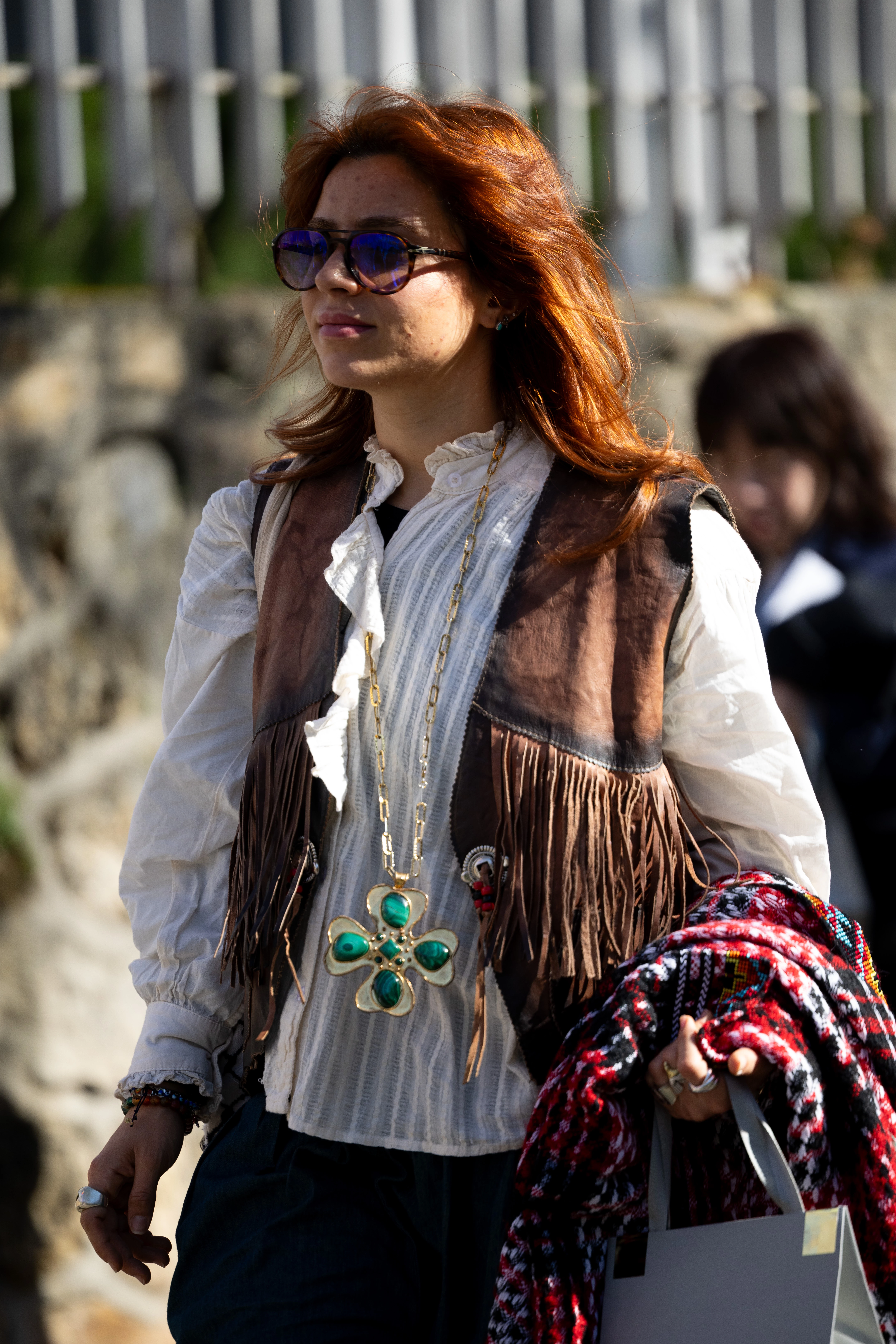Жилет із натяком на естетику дикого заходу – новий фаворит вуличного стилю та головний претендент на звання must-have позиції найближчих сезонів. Після того, як замшева куртка стала вірусним гітом, природним кроком стало перенесення цієї фактури на більш легкі форми – наприклад, на жилети. Цього разу мова не про стриманий лаконізм, а про ковбойські торочки й м’які природні відтінки. Жилет у стилі Western – з вишивкою, торочками або в класичному стилі – вже з’явився у гардеробах найстильніших модниць.