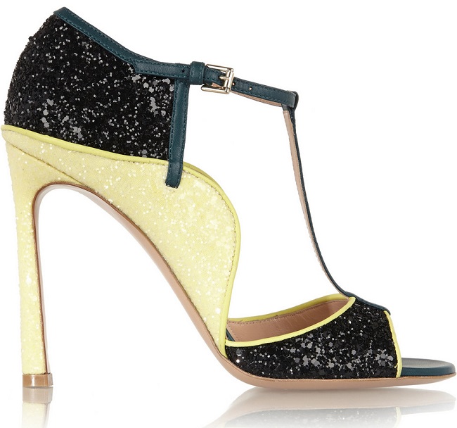 Туфли для весенне-летней коллекции дизайнер из Лондона Мару Катранзу создала вместе с известным обувщиком Джанвито Росси. Усыпанные желтым и черным глиттером, они выглядят одновременно празднично и по-летнему. К тому же, форма этой пары напоминает о туфлях танцовщиков. Катранзу сильно увлеклась балетом после сотрудничества с New York City Ballet и перенесла это вдохновение в коллекцию.