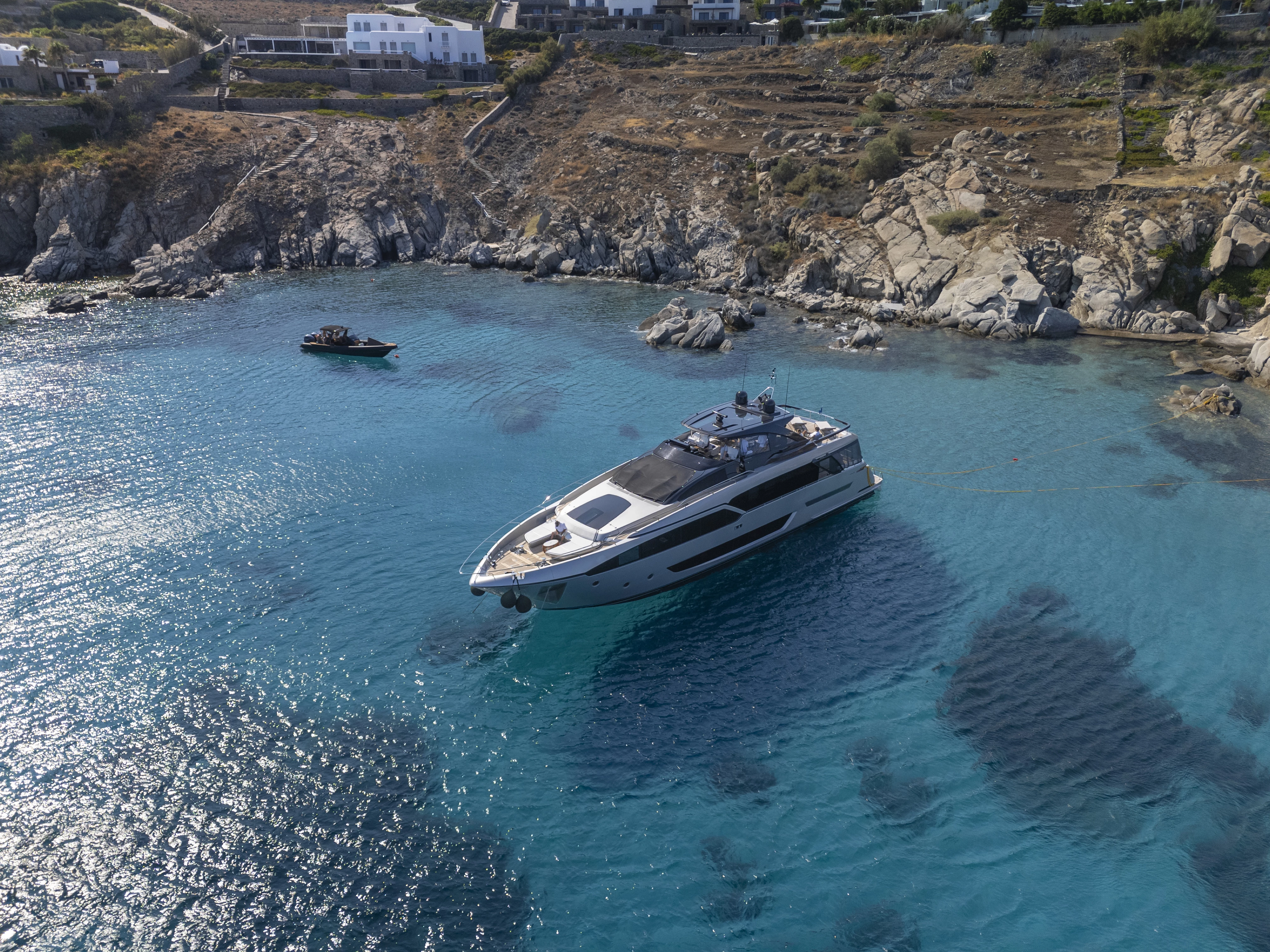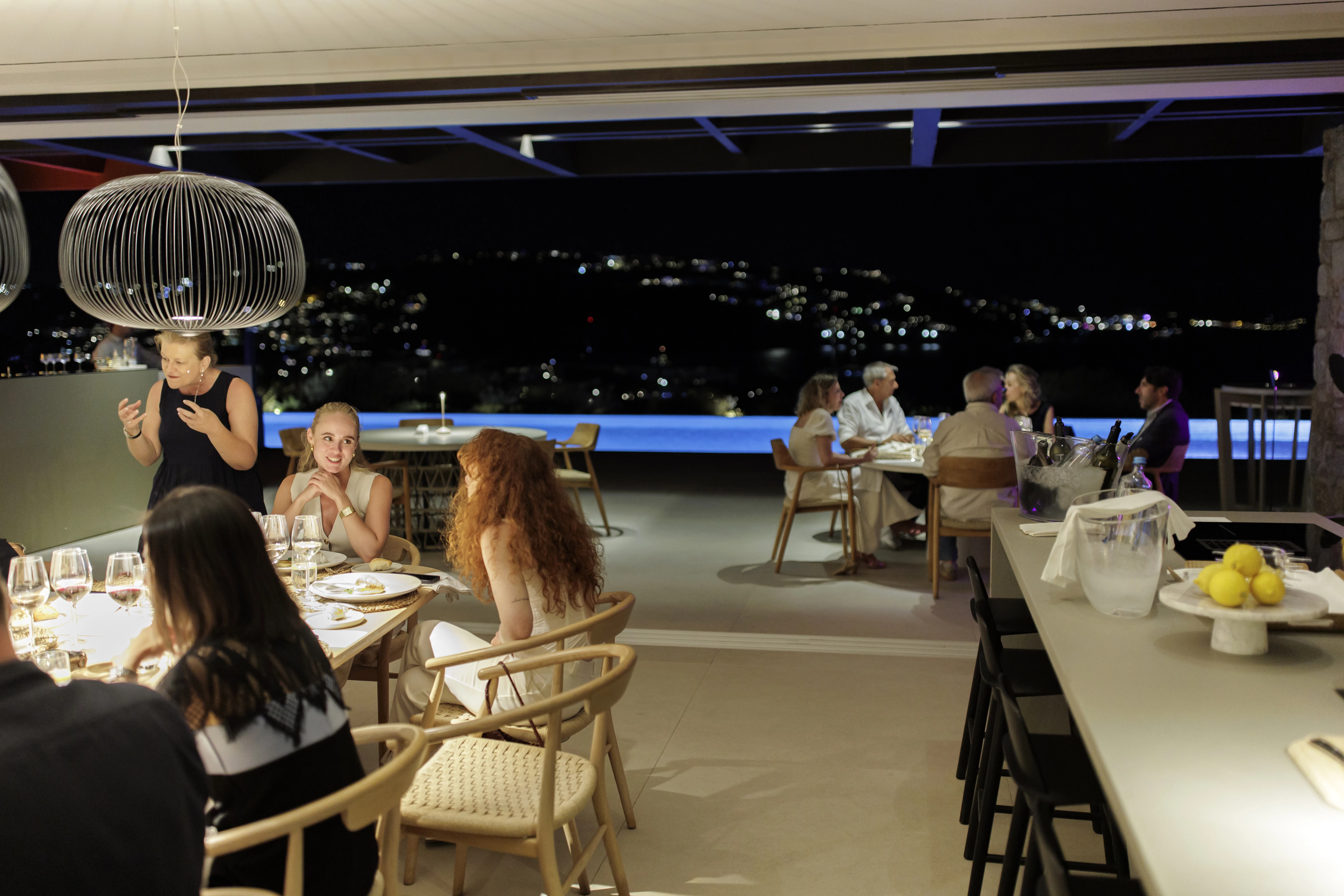 Наступним пунктом у програмі стала морська прогулянка на борту Sylia – флагманської флайбридж-яхти Riva 90’ Argo, створеної у співпраці з легендарною італійською верф’ю. Під час круїзу гості насолоджувалися дегустацією шампанського та кавʼяру на фоні бірюзових хвиль Егейського моря. Після повернення на віллу на нас чекала бездоганна вечеря від шеф-кухарів із зірками Мішлен у супроводі вишуканого вина та розмов під зоряним небом.