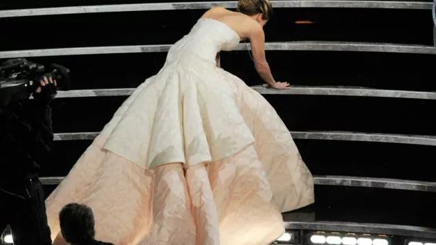 В платье какого бренда споткнулась Дженнифер Лоуренс, получая свою награду за "Лучшую женскую роль" в 2013 году?