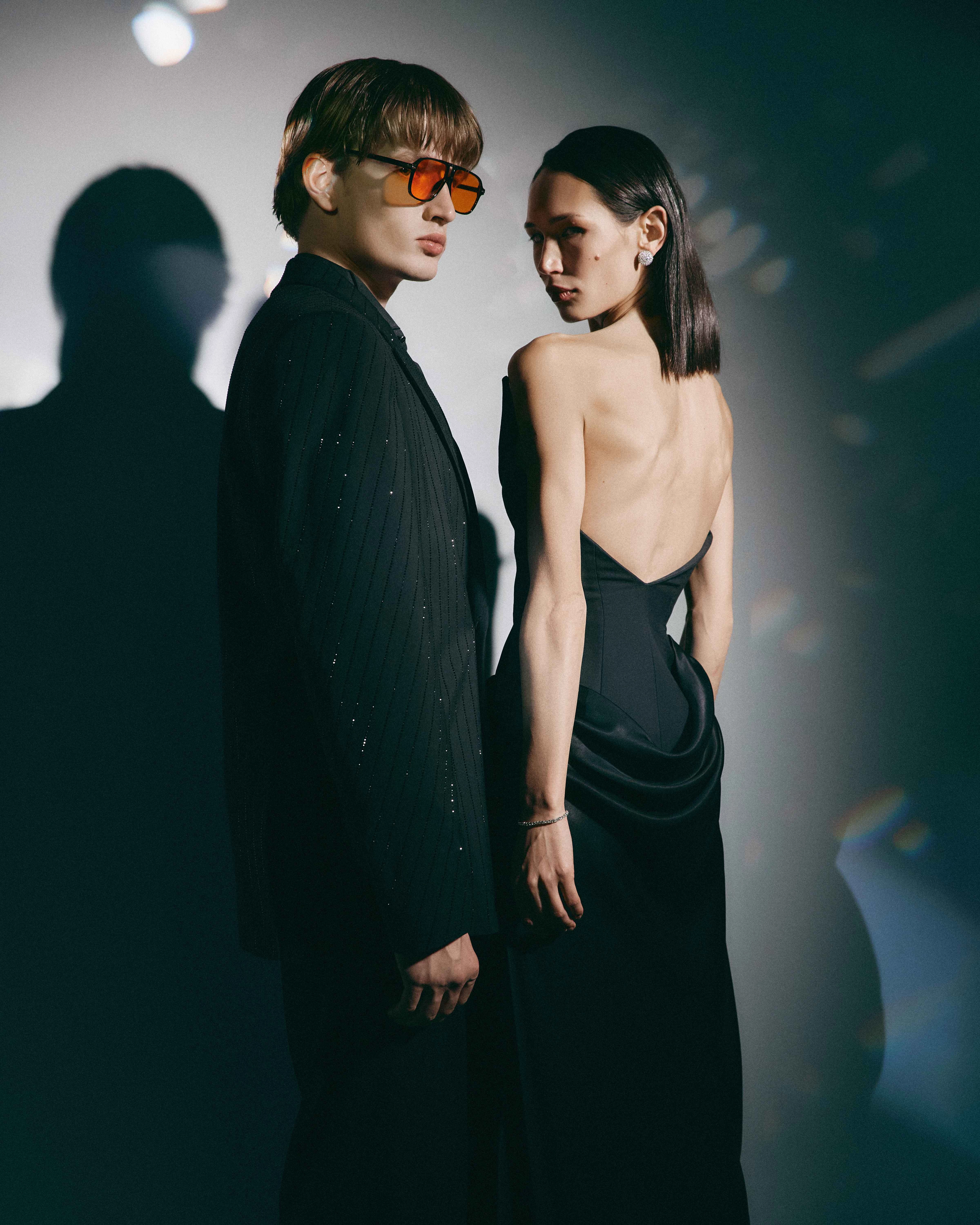 Святкова колекція Vesper від Andreas Moskin втілює стриману елегантність вечірнього вбрання. Заснована на філософії бренду, що поєднує сучасне кравецьке мистецтво та позачасову вишуканість, колекція виділяється різноманітністю текстур та витонченою кольоровою гамою з чорного, молочного та насиченого червоного. У чоловічій лінії представлено оксамитові смокінги, костюми з атласними вставками та деконструйовані піджаки. Чіткі лінії доповнюються такими деталями, як мікрострази та мінімалістичні квіткові аплікації, що додають сучасності традиційним вечірнім кодам. Дебютна лінія жіночого одягу розширює бачення бренду про сучасний одяг для особливих подій. У центрі уваги – атласні сукні, корсети, оздоблені невагомим пір'ям, оксамит та стрази. Ключовим образом колекції став сет із асиметричного корсетного топа та максіспідниці, повністю вкритий білим пір’ям.