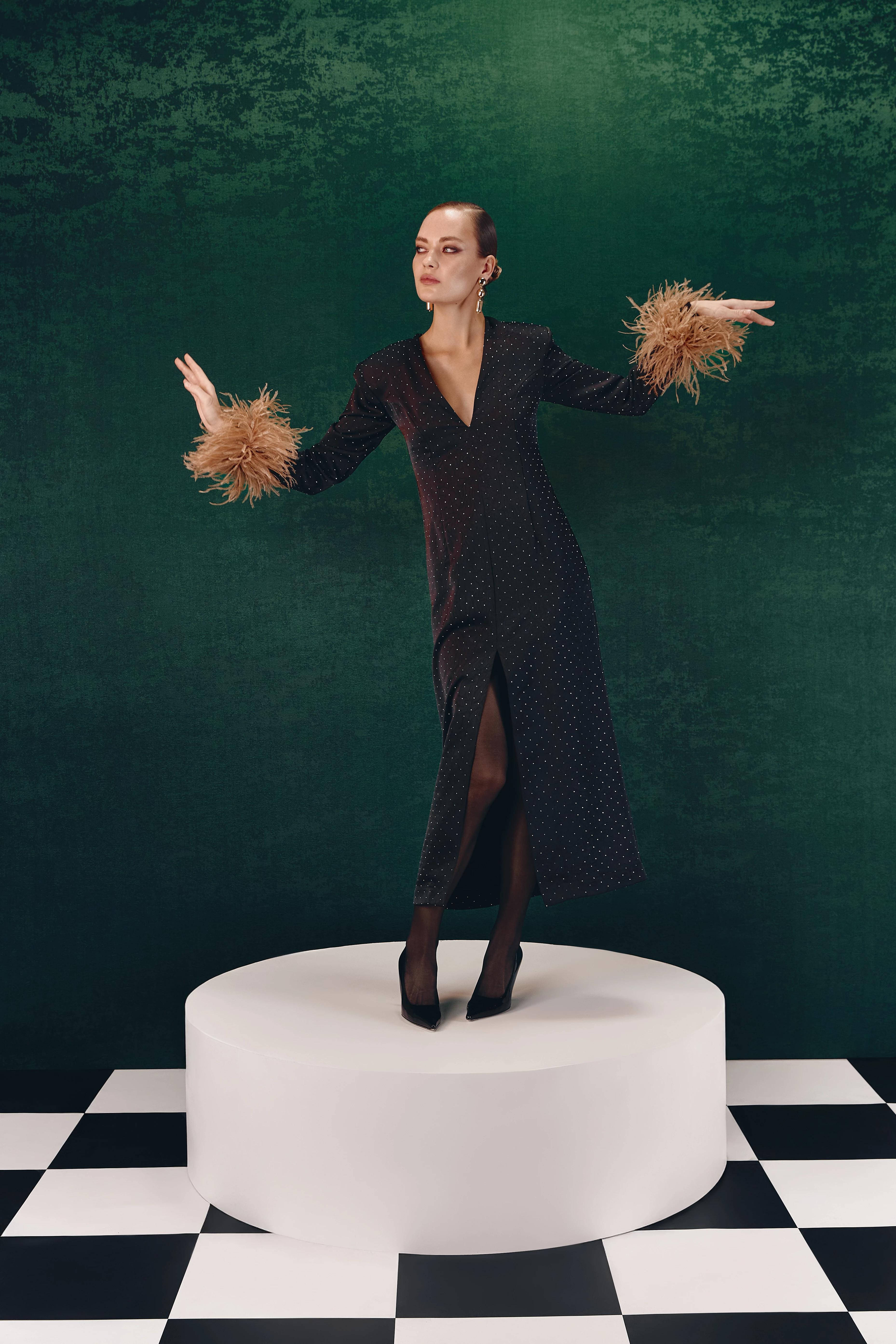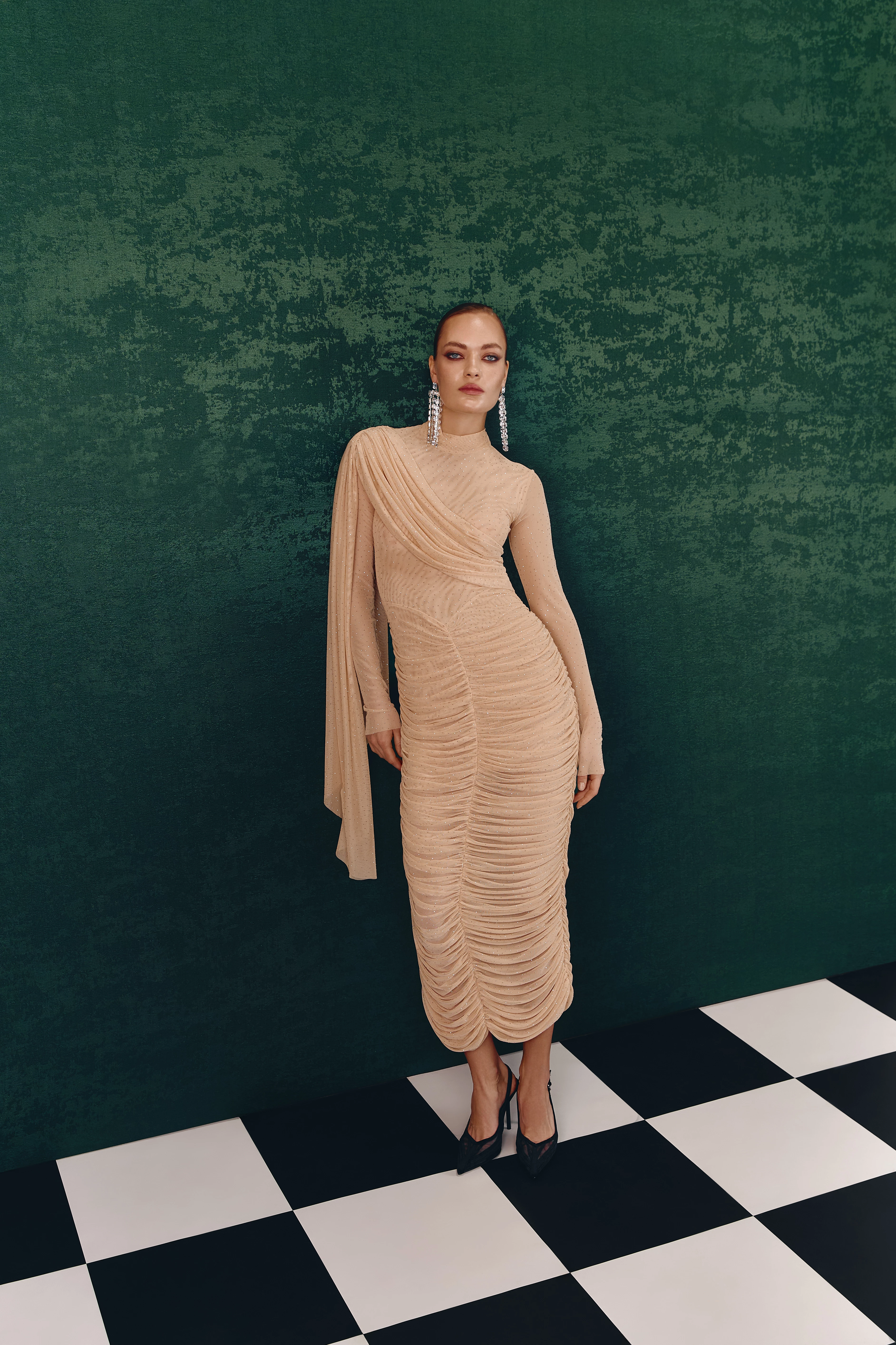 У новій святковій колекції Cili Nochi продовжують черпати натхнення зі сміливого духу українського модернізму початку ХХ століття та експериментального авангардного театру, де рух, форма та перформанс переосмислювалися без обмежень. Лінійка акцентує увагу на темних відтінках і стретчевих матеріалах, що повторюють рухи тіла, поєднуючи комфорт із елегантністю. Вечірні образи тут перетворюються на легкі, чуттєві та невимушені, створюючи гардероб, де свобода самовираження поєднується з естетикою української спадщини.