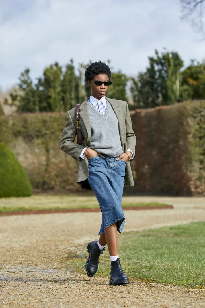 Schiaparelli Уютная вязаная жилетка в сочетании с актуальной юбкой – модное комбо этой осени. В таком образе вы можете смело отправиться на работу, учебу или деловую встречу. Забудьте про строгие костюмные юбки-футляры, в которых уж точно некомфортно провести целый день, и сделайте выбор в пользу денима, кожи, шелковых вариантов, моделей в складку и трикотажных юбок в длине миди или макси. С помощью такого простого стилистического приема ваш образ моментально станет смотреться в разы интереснее. Присмотритесь, как умело Эди Слиман работает с новым офисным гардеробом. Дизайнер скомбинировал джинсовую юбку со строгой рубашкой в полоску, вязаной жилеткой, клетчатым жакетом и ботинками-челси с белыми носками. Для максимального комфорта в осенний сезон, надевайте полный вязаный образ – жилетку на голое тело с элегантной юбкой и высокими сапогами, как показывает Jason Wu. А для девушек, которые не бояться экспериментов на работе, подойдет образ в школьном стиле Valentino.