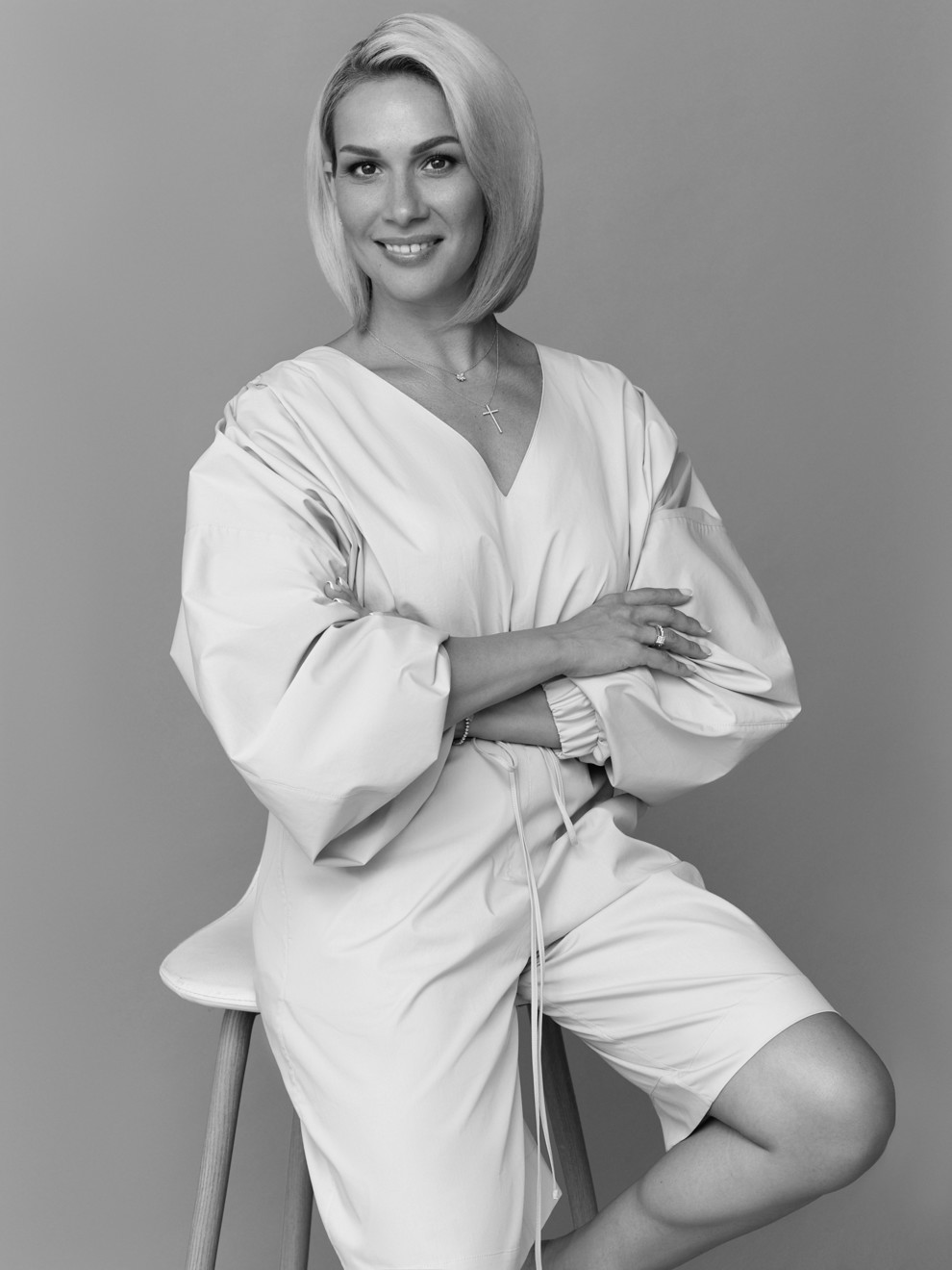 Свою першу зморшку я помітила після концерту Пола Маккартні. Так і назвала її: "зморшка імені Маккартні". Тоді мені це навіть сподобалося. Одного разу їхала за кермом, раптом спіймала в дзеркалі свій насуплений погляд — і мене прямо пересмикнуло. Пам’ятаю, сказала собі: "Або міняй щось у житті, або міняй вираз обличчя". Начебто вийшло. Ну і якщо стисло, то так, спосіб життя — він на обличчі, на тілі, у погляді. Тому — спорт, косметолог, легка закоханість, класна робота, люди, що надихають, і постійні плани мандрувати, відкривати й створювати.