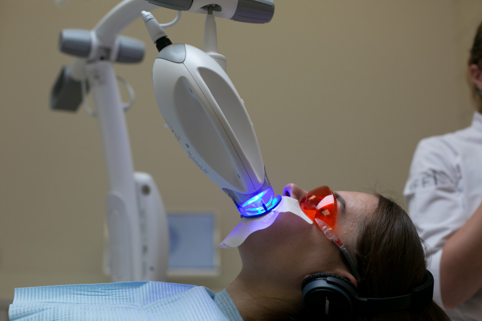 У жовтих захисних окулярах проходжу три сеанси такої "засмаги" по 15 хвилин. На перервах лікар перевіряє захист ясен і повторно наносить гель. Перший сеанс проходить безболісно. Під час другого з’явився невеликий дискомфорт: ясна ніби ріже. Втретє довелося трохи потерпіти. Мене запевняють, що це відчуття минеться протягом 10 хвилин і за допомогою капи наносять заспокійливу маску. Зрештою мені не довелося пити знеболювальне чи вживати додаткових заходів, аби ліквідувати чутливість емалі. Навіть випивши склянку прохолодної води, я не помітила дискомфорту.