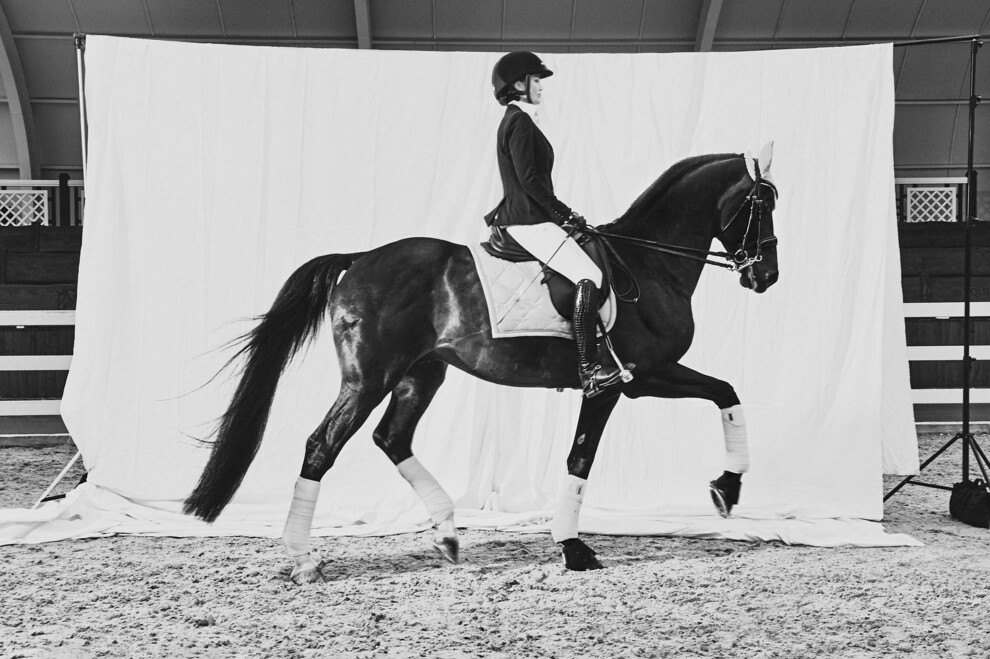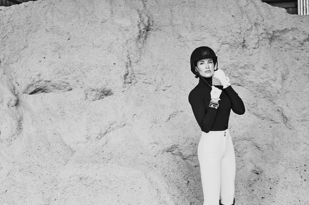 На зустріч Олександра приїжджає просто з тренування – в легінсах, кепці, чорній водолазці. Високі чоботи для верхової їзди, сумка Hermès – все як ідеальне вбрання для міської прогулянки. І тим не менше, це тренувальна форма, просто дуже гарна. Верховою їздою, а точніше виїздкою, Олександра займається близько року, але захоплена настільки, що збирається купувати другого коня, в поїздках просить тренера надіслати фотографії тварини в месенджер і тренується п'ять разів на тиждень. "Хотілося б щодня, але треба відпочивати, – каже вона. – Не мені, коню".