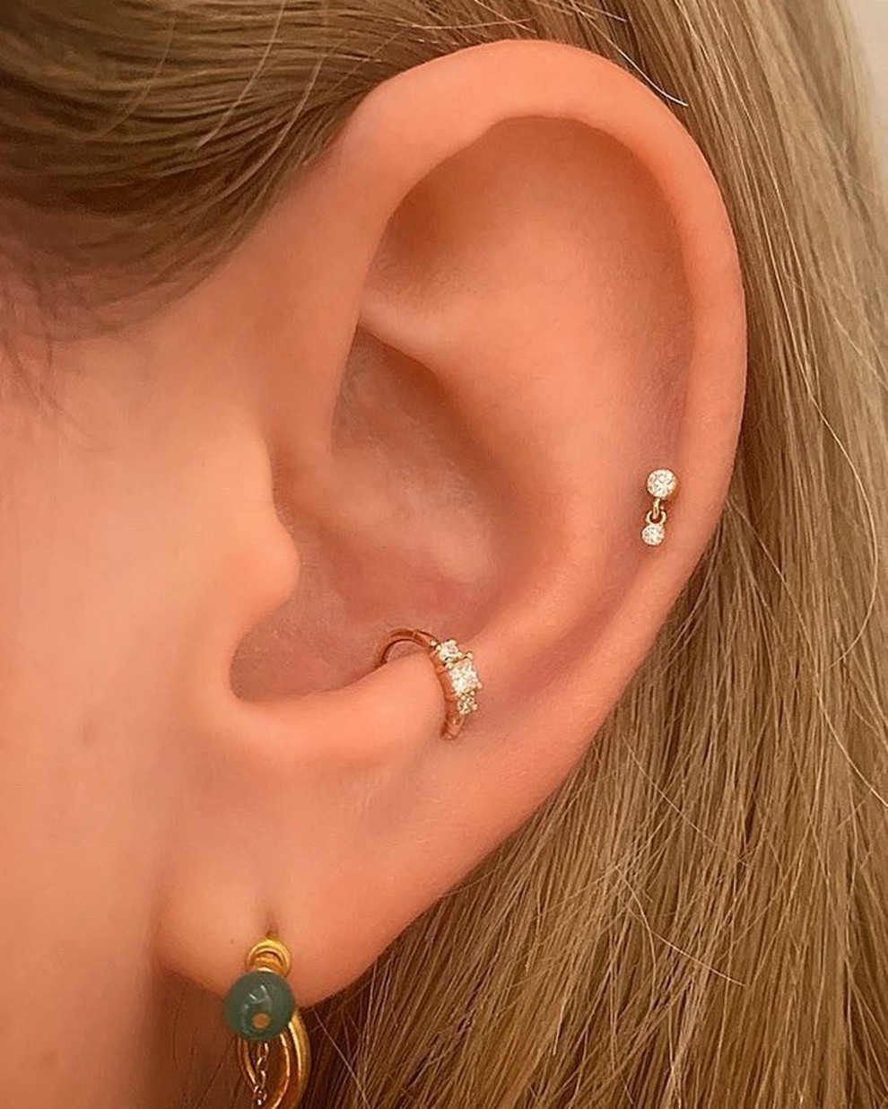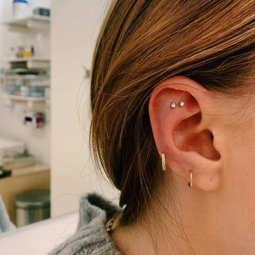 @_daniellebodypiercing_Хто готовий вийти за межі мочок (або вже вийшов), може розглянути плоску ділянку у верхній частині вуха. "Щоразу, коли я пропоную цю ділянку клієнтам, вони кажуть: "Вау, хто б міг подумати, що цю частину вуха можна проколювати", – каже Кастілло.