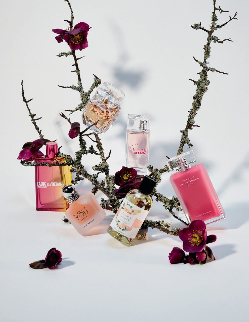 This Is Love! for Her, Zadig & Voltaire, пахне зацукрованими пелюстками фіалок, які подають у віденському кафе Demel (здається, це було в минулому житті). Його кондитерську суть тільки підкреслюють ноти імбиру й сандалу. Le Parfum Essentiel, Elie Saab — ніжний, як пелюстки флердоранжу, квітки наречених. Його чистота відтінена шляхетними суворими нотами гарденії й кедра. L'Eau Kenzo Pour Femme Hyper Wave, Kenzo, — ода свіжості. Водяний, прохолодний, сповнений мотивами лотоса й апельсинового цвіту, на шкірі він теплішає нотами рожевих грейпфрутів. In Love With You, Emporio Armani, — love story, ніби ольфакторна ілюстрація роману Саллі Руні "Нормальні люди" (до речі, екранізація hulu і BBC виходить 29 квітня): історію любові в ньому розповідають ноти півонії, білого мускусу, пачулі, мандарина й ветиверу. Мріяти про вечори (а насправді вечірки) в саду, де трава волога, а на деревах погойдуються старомодні лампочки, найприємніше з Garden Party, Yves Rocher: він сповнений нотами м’яти й троянд. Fleur Musc for Her Eau De Toilette Floral, Narciso Rodriguez, — це еквівалент рожевої сукні Вілланель з "Вбиваючи Єву": пишний, вкрадливий, нарочито невинний, але гранично небезпечний, зі своєю комбінацією троянд, мускусу й пачулі.