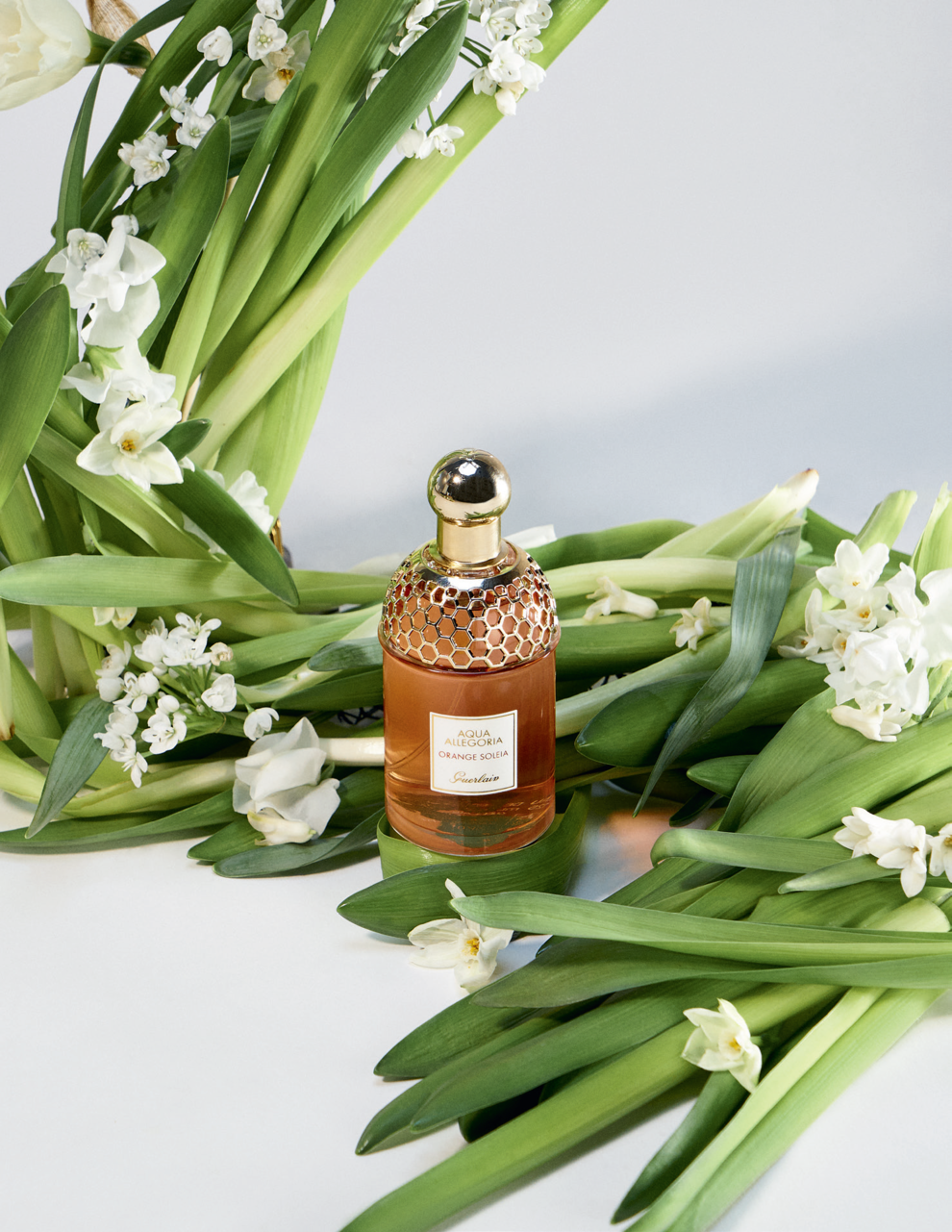 Orange Soleia, GuerlainOrange Soleia зі знаменитого середземноморського сімейства Aqua Allegoria запрошує в подорож Італією своїми нотами сицилійського апельсина, від якого мимоволі мружишся в захваті, свіжістю м’яти, деревною зеленню кедра й терпким рожевим перцем.