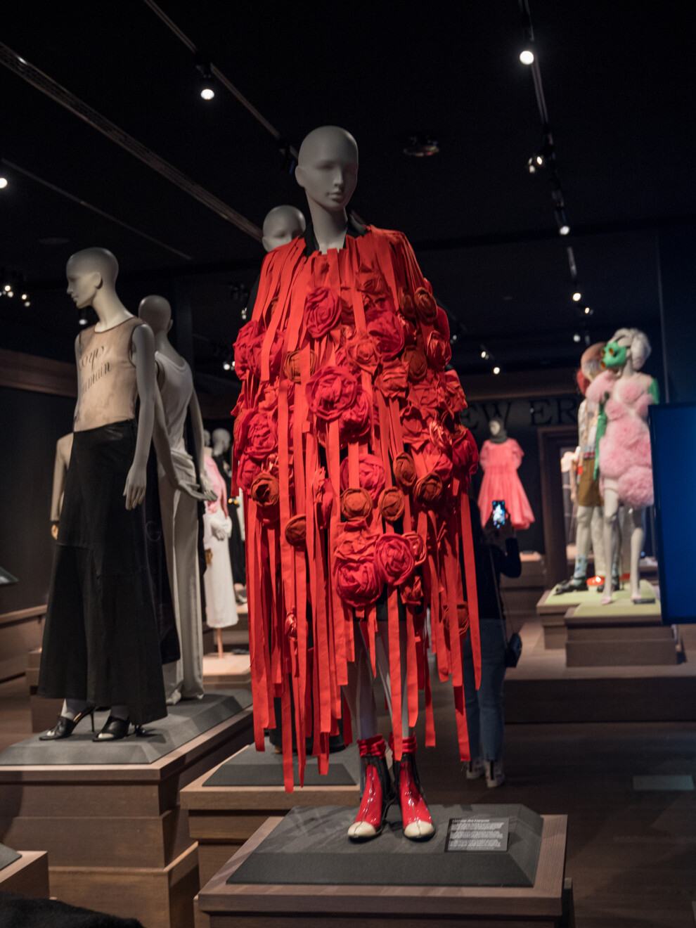 MoMuДо 23 січня 2022 року в MoMu працює експозиція "Мода в перехідний період", яка досліджує модний ландшафт останніх трьох десятиліть і намагається передбачити, як fashion-індустрія може переродитися і як зміниться роль дизайнерів. Виставка поділена на частини, кожна з яких досліджує соціальні, політичні та психологічні зміни, які відбуваються в цей час у суспільстві. Серед експонатів — фатинова сукня Molly Goddard, деконструйований трикотаж Raf Simons, упізнаваний похмурий романтизм Alexander McQueen, знамениті сукні з обличчями Prada і багато іншого.
