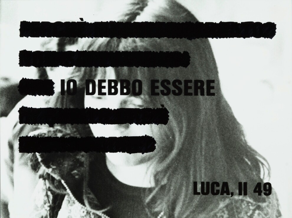 Серед безлічі знакових робіт, представлених на виставці, виділяються вербально-візуальні ансамблі Кеті Ларокки і Люсії Маркуччі; чорно-білі світлини фотографів Паолі Маттіолі, Лісетти Кармі і Лібери Мазолені; химерні, але тривожні твори Клемен Паррокетті і Діани Бонд.