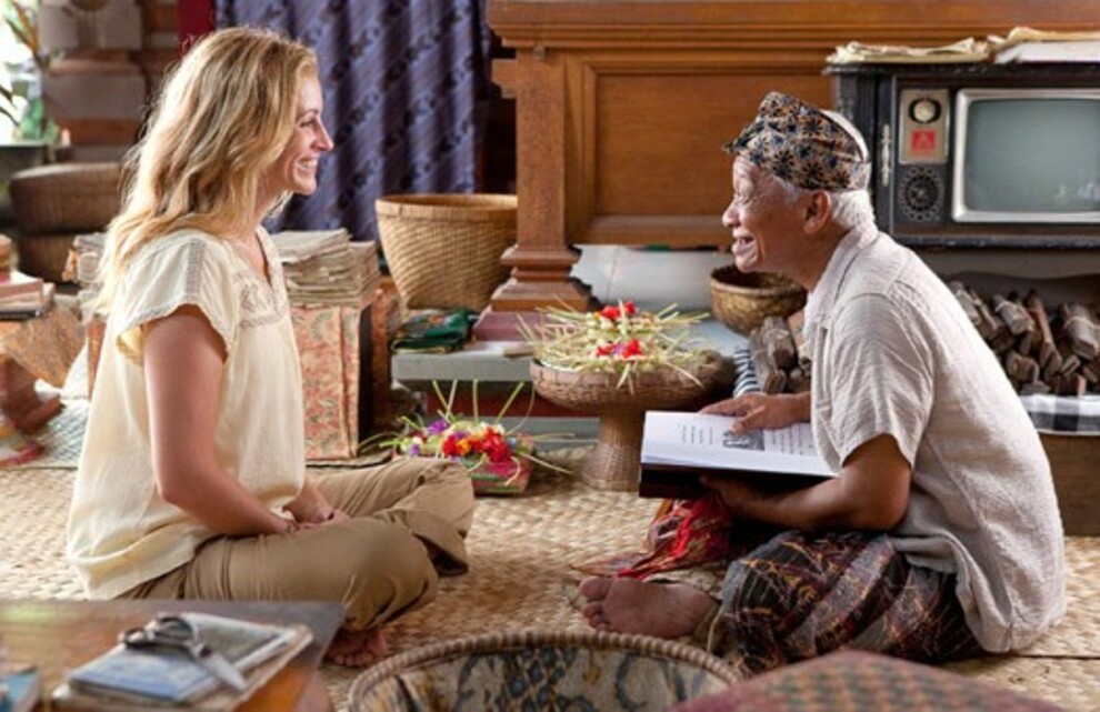 Кадр із фільму "Їж, молись, кохай", 2010Американська письменниця Елізабет Гілберт написала мемуари "Їж, молись, кохай", коли в її житті настав переломний момент — попри успішну кар'єру, шлюб і гарне матеріальне становище, Гілберт зрозуміла, що живе не своїм життям. Книга, за мотивами якої знято однойменний фільм, описує реальну життєву ситуацію Елізабет Гілберт, яка після складного розставання з чоловіком вирушила в цілорічну подорож по світу і знайшла себе заново. З роллю письменниці добре впоралася Джулія Робертс, крім якої, у фільмі також знялися Хав'єр Бардем, Джеймс Франко, Софі Томпсон.