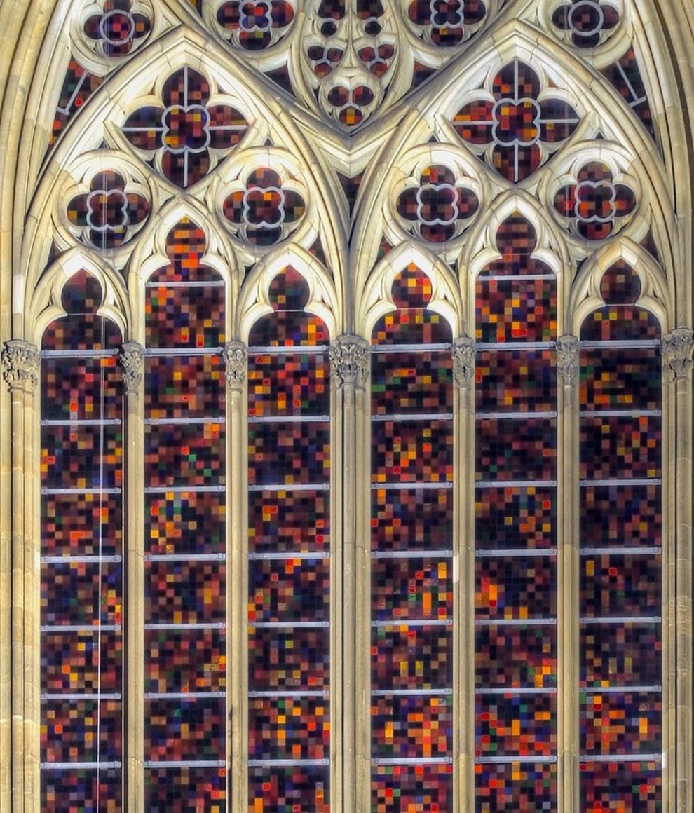 Вітраж у КельніДо слова, ще одну відому роботу може побачити будь-хто – це вітраж у Кельнському соборі. Піксельне зображення художник зробив за свій рахунок і подарував місту, за що отримав хвилю критики про те, що замість пікселів краще б зобраз обличчя святих мучеників. Хоч суспільство часто не розуміє робіт Ріхтера, він залишається одним з найбільш визнаних і дорогих художників у світі і став живим класиком. 1977 року паризький Центр Помпіду відчинив свої двері саме з його ретроспективою всередині; а в списку художників, які принесли найбільше прибутку за останні 60 років, він перебуває на п'ятому місці і єдиний серед нині живих – після Пікассо, Воргола, Клода Моне, Бекона і Ренуара. Люблять його і в поп-культурі: так, одна з робіт з його фотореалістичної серії "Свічки" потрапила на обкладинку альбому гурту Sonic Youth, йому присвячував пісні гурт Pet Shop Boys, художник не раз ставав головним героєм документальних і художніх фільмів.