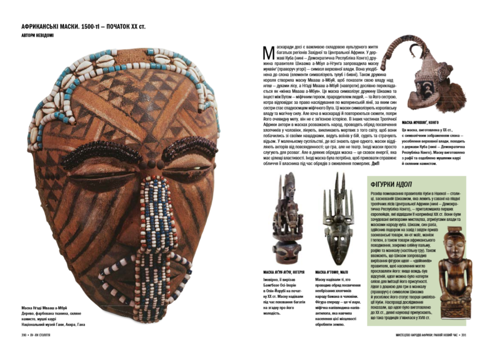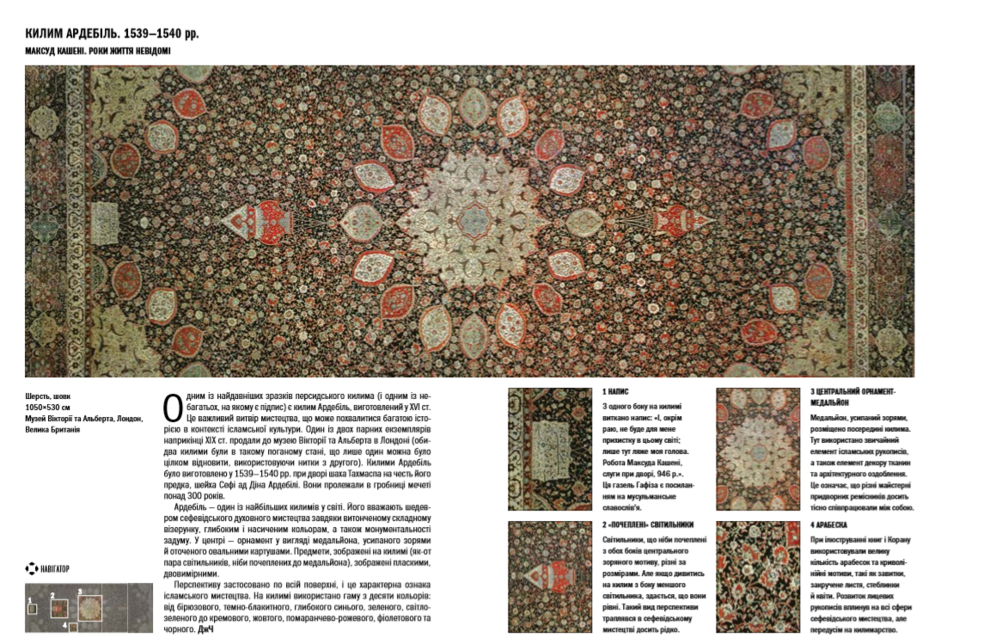Крім знакових творів у книзі автор звертає увагу на національні елементи культури. Наприклад, орнаменти ісламських килимів, африканські маски, китайське начиння і теракотову армію, елементи одягу, іграшки та прикраси. Окрему главу Фартінг виокремлює для килимів. Наприклад, один з найбільш древніх – перський килим Ардебіль: він має особливу історичну цінність, а в ісламській культурі вважається витвором мистецтва. Це один з найбільших килимів у світі, а складність орнаменту та історія роблять його унікальним. У центрі – медальйон, що рясніє зірками і оточений овальними картушами, а палітра малюнка традиційно складається з десяти барв.