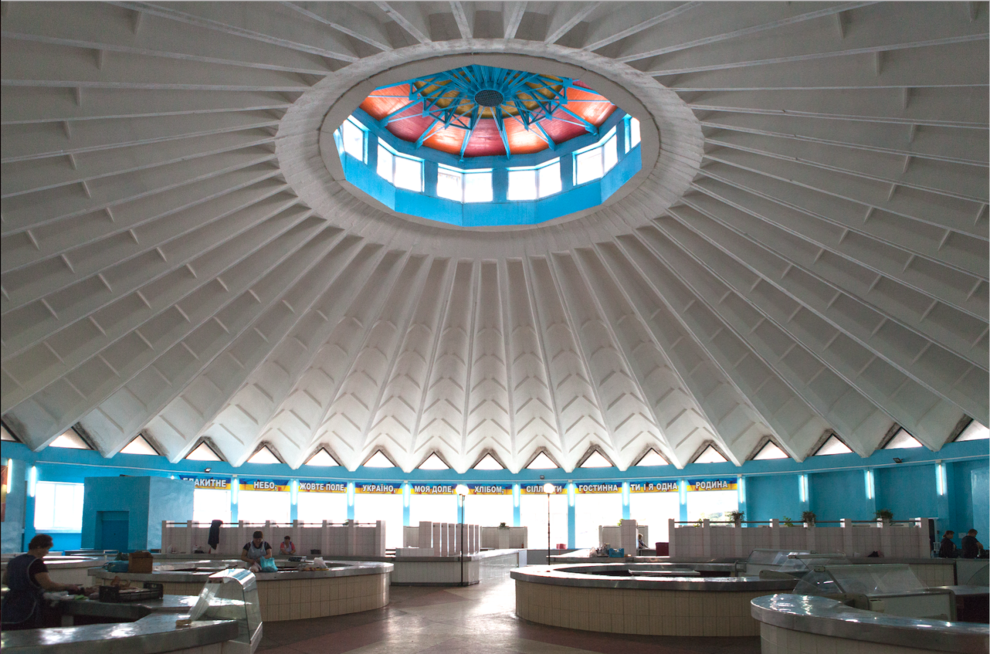 Міський ринок, Хмельницька областьГотель "Салют" – це одна з найвиразніших і найяскравіших будівель модернізму в Києві. Цікаво, наприклад, що за планом будівля мала бути втричі вищою, але після того, як партійна комісія побачила будівлю на етапі будівництва 5-го поверху, на цьому вирішили зупинитися.