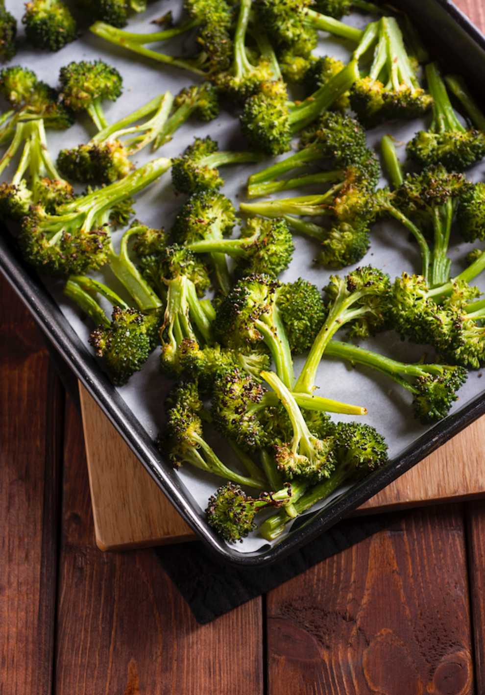 - Викладіть броколі в один шар на деко і запікайте до готовності, перевертаючи кожні 12 хвилин.