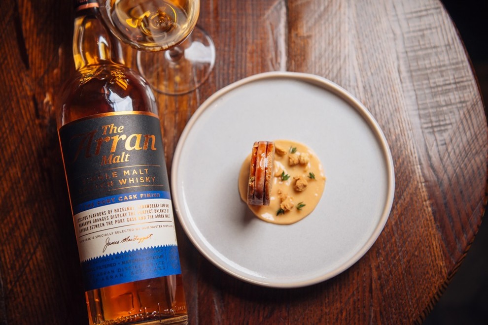 2. Сендвіч із гречаної муки з Торшон фуа гра, білим запеченим шоколадом і айвовим джемом – Arran 10 Port Finished.