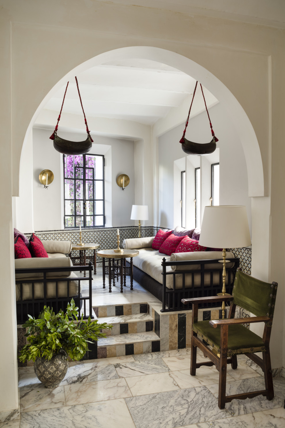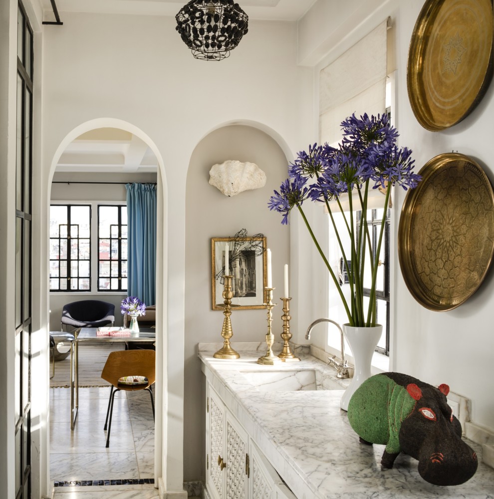 Керамічні вази з Тоскани, світильники з мексиканського міста Пацкуаро, мідні і алебастрові люстри – деталі будинку в Танжері.