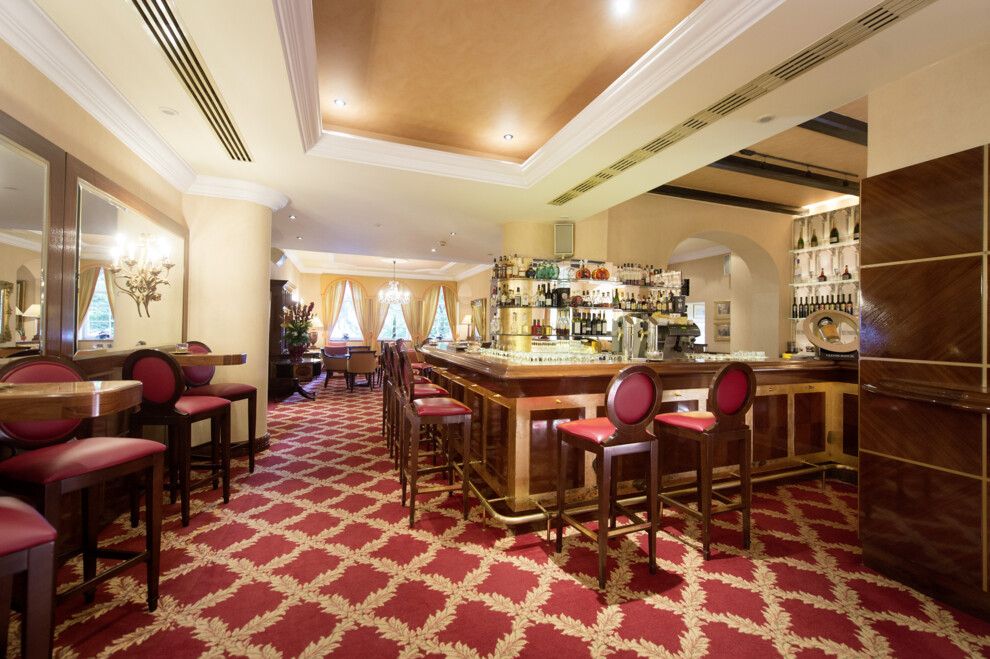 У ресторанах Orangerie, Porto Bello і La Terrasse пропонують страви італійської, середземноморської та місцевої альпійсько-адріатичної кухні. Шеф Річард Хессл, чия робота відзначена "ковпаком" гіда Gault Millau, робить ставку на локальні продукти. Мармурову яловичину вагю доставляють з долини річки Лавант, овочі і фрукти — з полів Каринтії, сири з овечого та козячого молока — з органічної ферми Winklerner Biohof, а рибу ловлять в озері просто під вікнами. Страви доповнюють австрійські грюнери, рислінги і благородні вина Шампані. Після вечері в Schlossbar можна викурити сигару або вибрати гідний дигестив — самого лише бурбона, скотча й ірландського віскі тут не менше 60 видів. У Schlossbar любив бувати Удо Юргенс — сидячи за роялем, він не раз виконував знамениту Merci Cherie. Рояль і нині там, а на честь маестро названо найрозкішніший люкс.