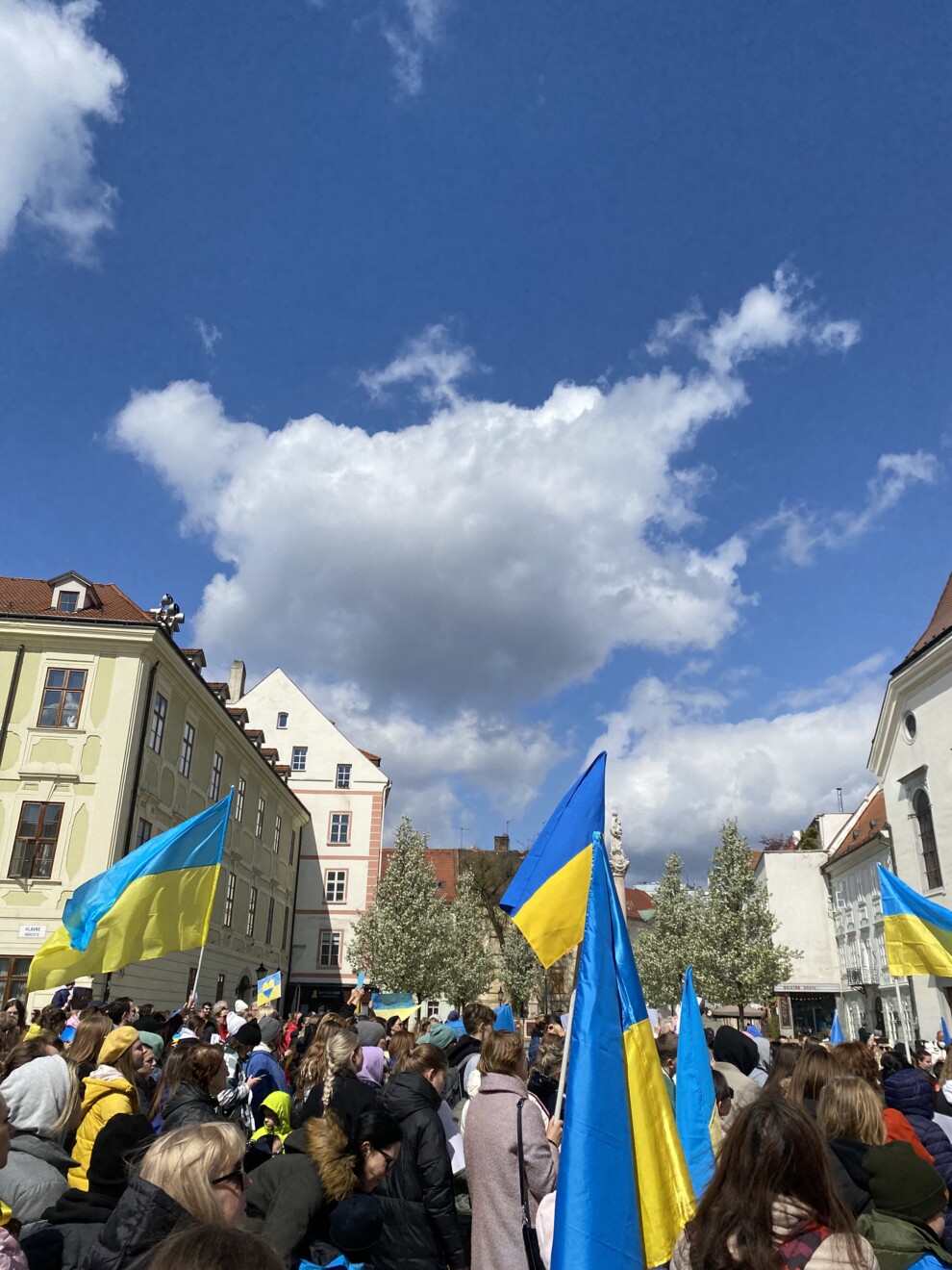 10.04 ми доєднались до мирної ходи "Марш Матерів" у Братиславі. Метою було привернути увагу європейських міст та всього світу до трагедії, яка відбувається з дітьми в Україні. Під час Маршу жінки тримали в руках заплямований згорток, як символ знищених окупантом дитячих життів та понівечених доль. Убивства, зґвалтування та катування дітей російськими загарбниками – те, що відбувається просто зараз в Україні. Увесь світ має знати про звірства росії в Україні.