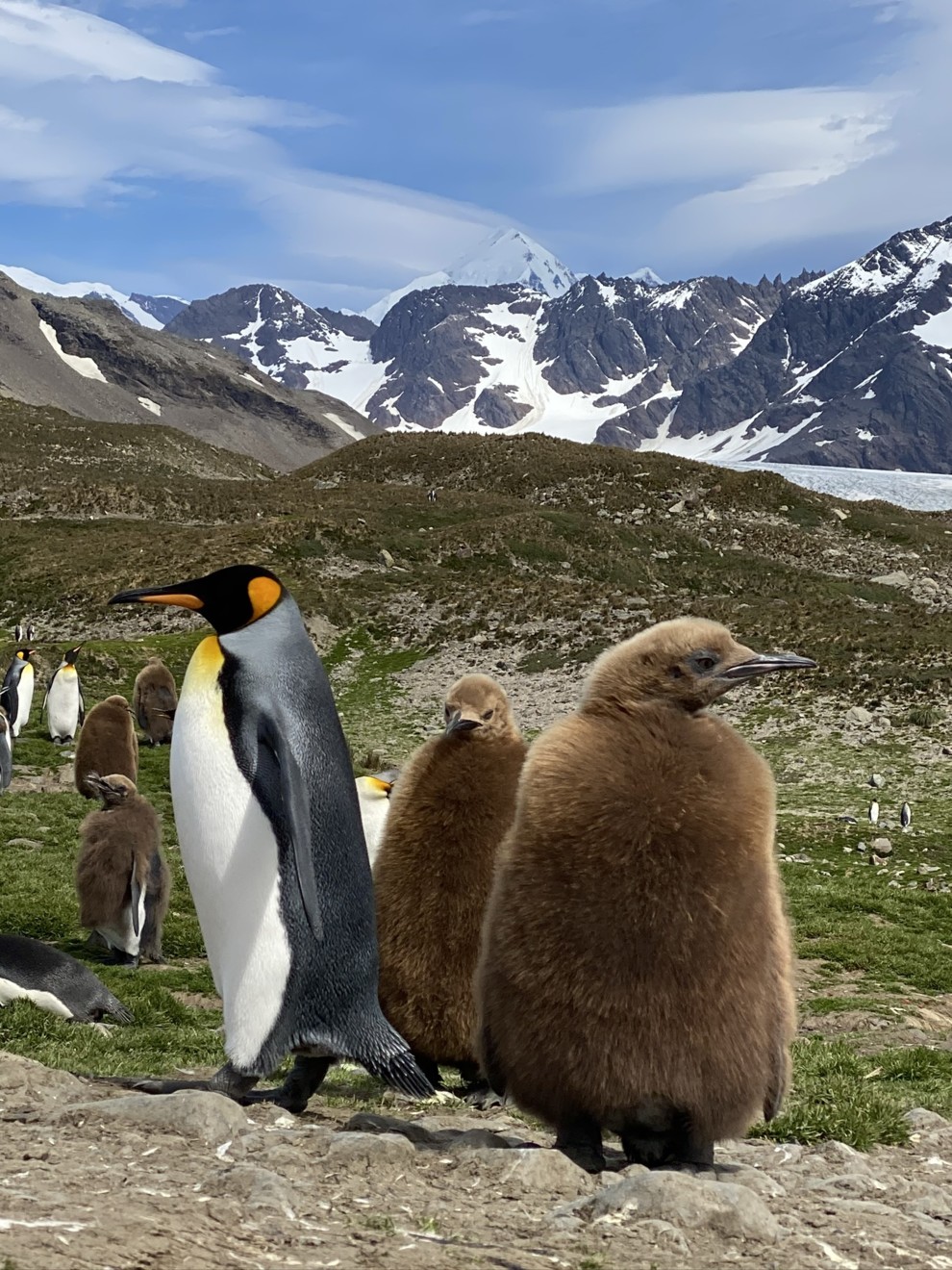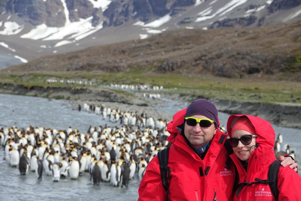 Після Фолклендських островів прямуємо на острови Південної Георгії. Щоранку в каюту доставляють газету "Хроніки Silversea", де нам анонсують розклад на день. Крім прийомів їжі і вечірніх розваг – музики, танців та ігрових конкурсів – у програму експедиції включені лекції вчених, які спеціалізуються на вивченні історії, флори і фауни Антарктиди. Саме там ми і дізнаємося про життя диких тварин, зустріч з якими ще попереду. Південна Георгія, територія Великобританії, є справжнім раєм дикої природи з її вугільно-чорними горами, засипаними сніговими гігантськими льодовиками. Це царство морських слонів (elephant seals) і королівських пінгвінів, які без страху підходять і розглядають людей у червоних куртках.
