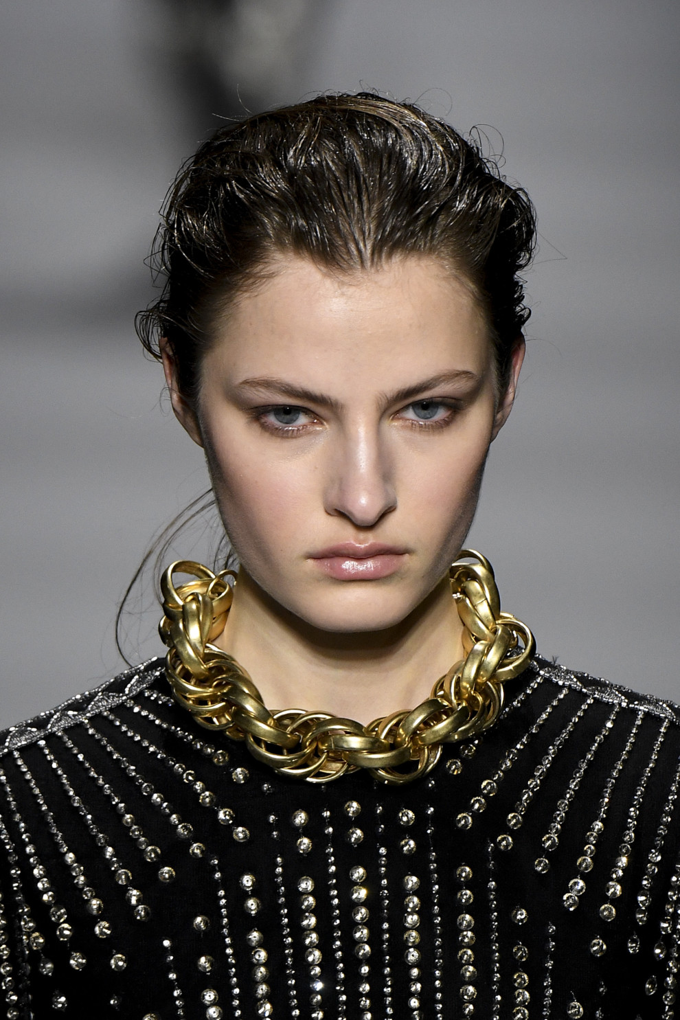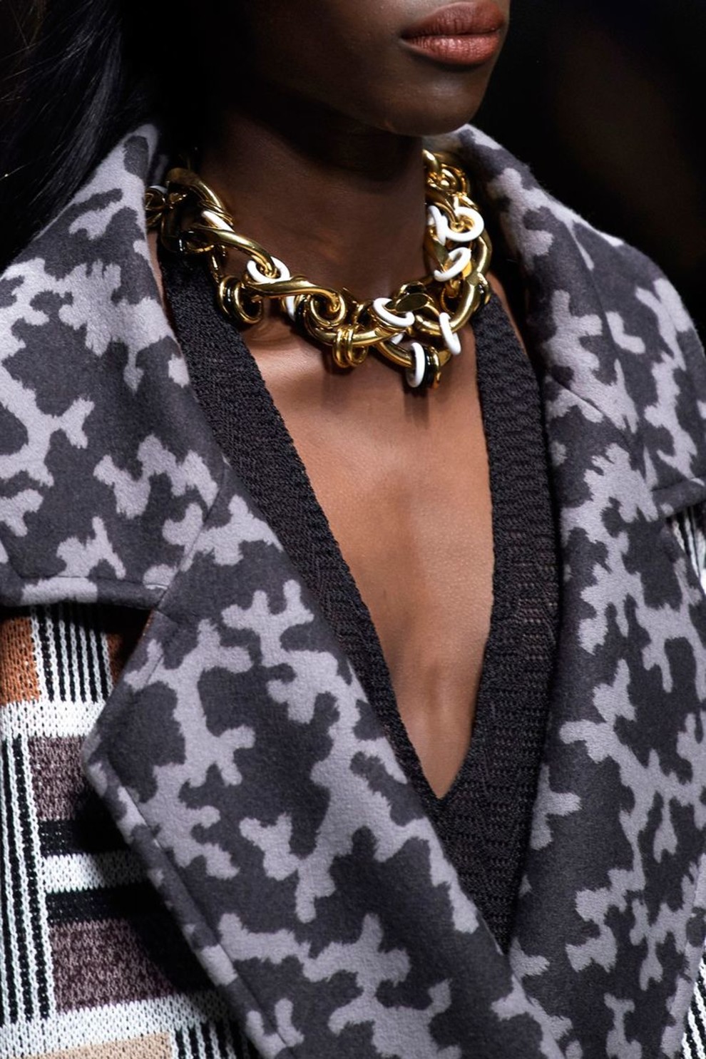 Saint LaurentТренд на масивні ланцюги не втрачає своєї актуальності вже кілька сезонів поспіль, прикрашаючи як сумки та взуття, так і стаючи головним елементом образів у вигляді ефектних кольє. Наступної осені варто знов ставити на прикраси у вигляді масивних ланцюгів, як в Alberta Ferreti, Missoni й Saint Laurent.