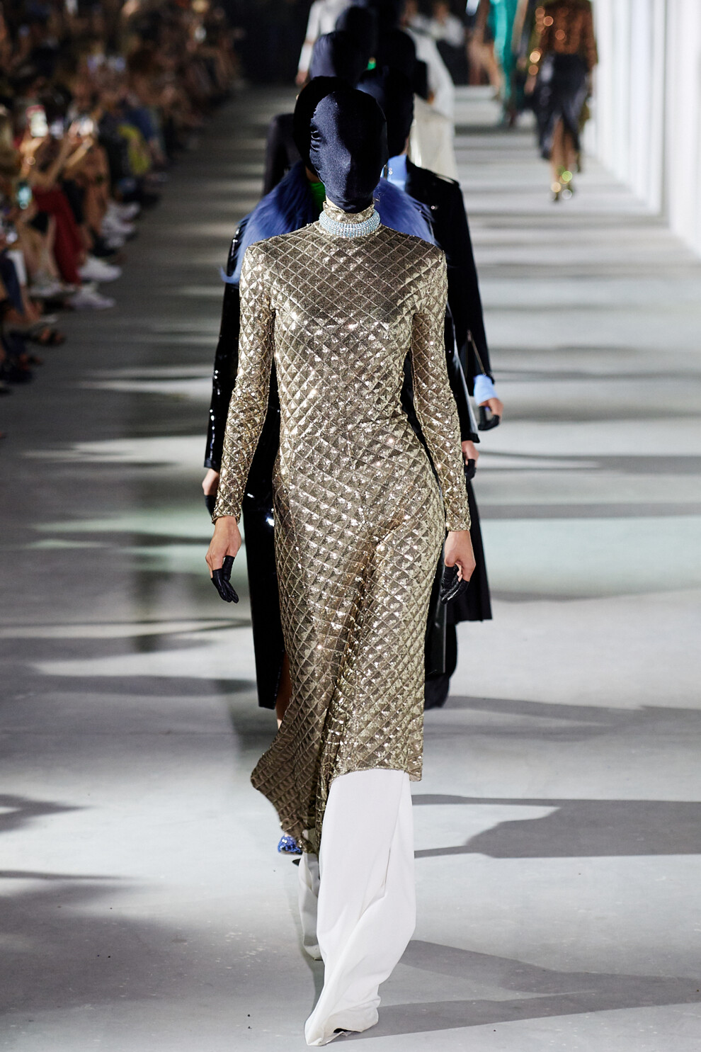 GUDU весна-літо 2020Особливість показів Gudu – закриті обличчя моделей. Лаша хоче, аби глядачі не відволікалися на обличчя, а зосередили увагу на вбраннях. Такий трюк працює: завдяки йому вдається розглянути кожну річ у найдрібніших деталях. Оцінити, скільки сотень леліток знадобилося, щоб розшити сукню, задуматися, якою технікою скористалися, щоб видути химерні горбки на спідницях, помізкувати над ідеєю деконструкції тих чи інших речей.