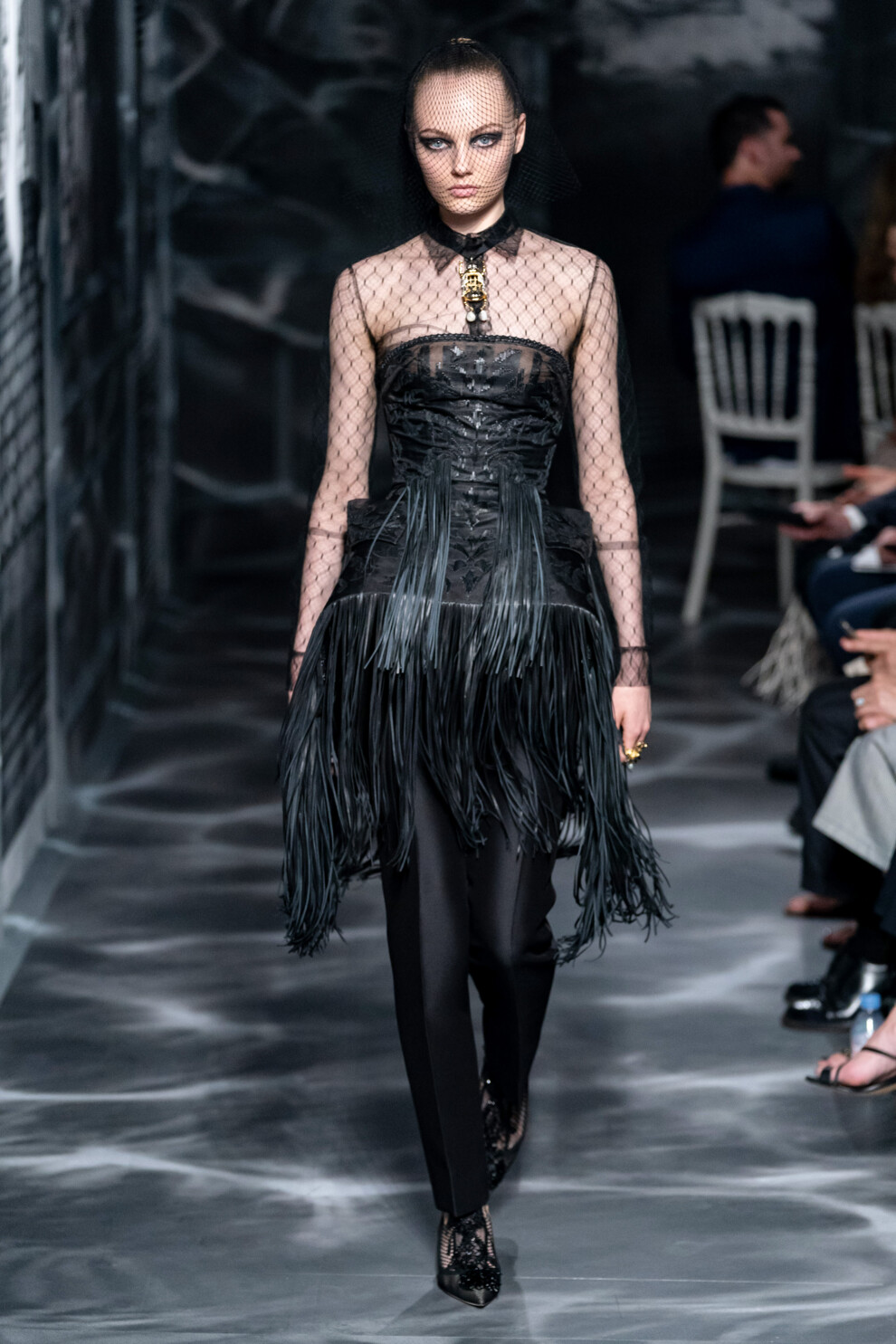 Christian Dior Couture осінь-зима 2019/2020Прагнення до невагомості – ще одна з важливих рис цієї колекції. Марія Грація К'юрі активно використала напівпрозорі вуалі, але закрила ними не просто обличчя моделей, а покрила плечі і руки. Цей прийом допоміг їй дотримати баланс і уникнути ваговитості складних архітектурних форм.