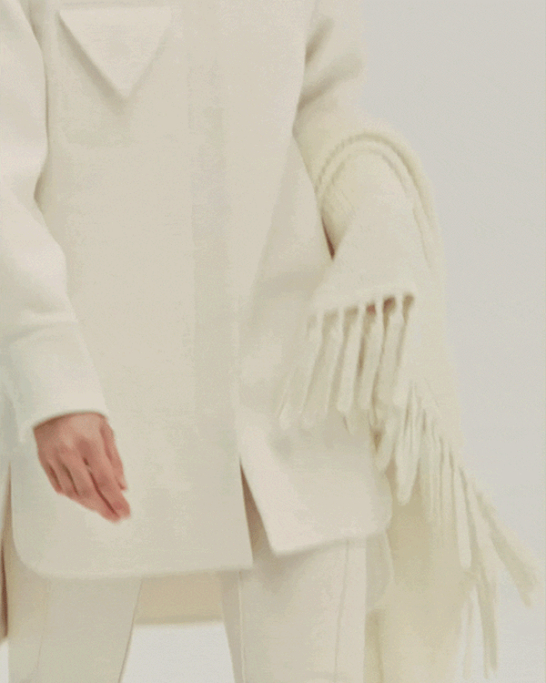 Королева РаніяПальто з осінньо-зимової колекції BEVZA прикрашено знаковою деталлю — трикутником на місці кишені, що уособлює традиційну українську хустку. Образ Ранія доповнила темно-синіми джинсами й чорними кросівками.