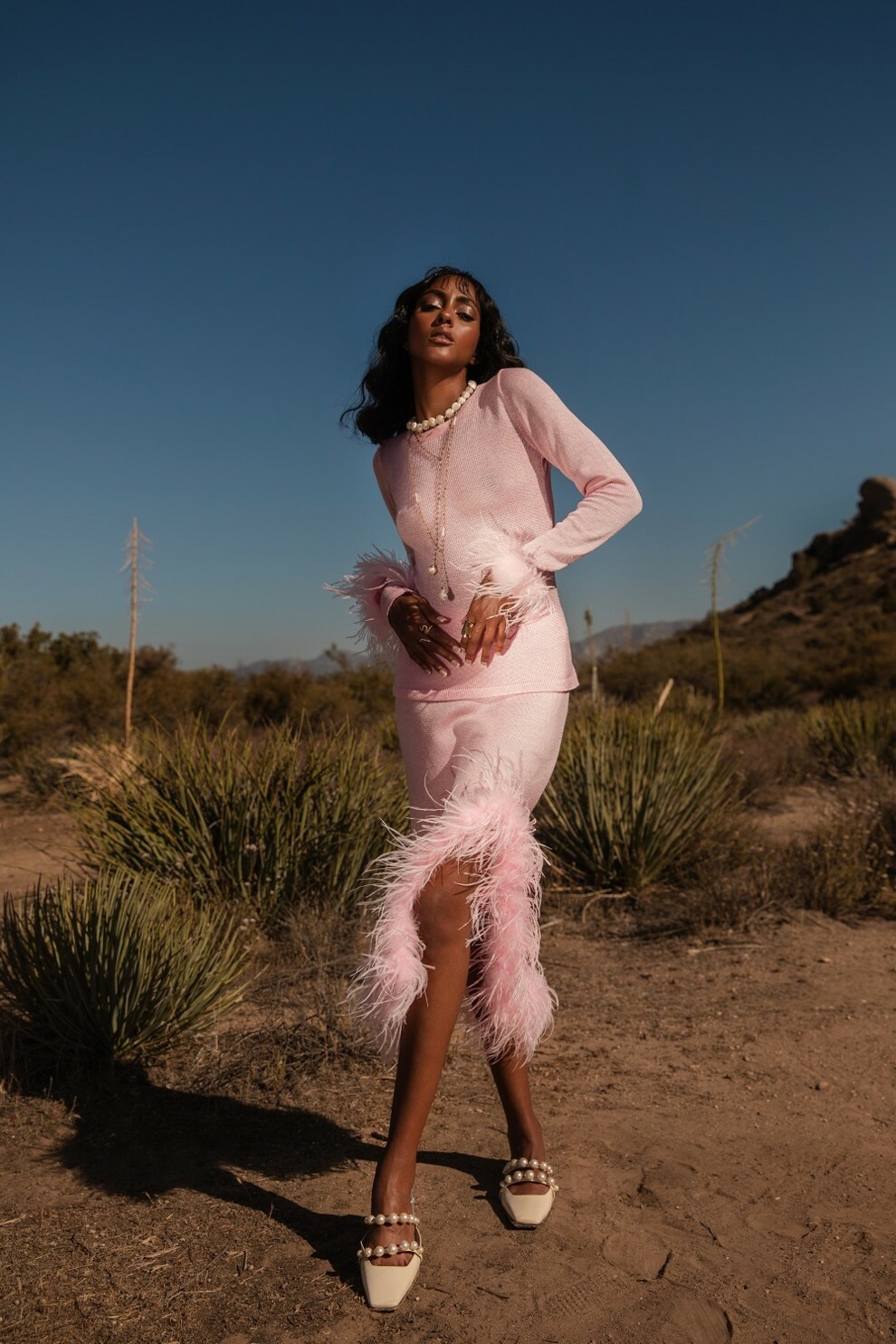 Олівія Палермо в спідниці AndreevaЯскрава й пам’ятна естетика Andreeva ідеально вписується в гардероб модниці, у якому стримані речі легко сусідять з грайливими й ультражіночними моделями. Ніжно-ментолову спідницю української марки Олівія Палермо поєднує з лаконічними жилетом або нюдовим топом, що майже зливається зі шкірою. А ось до такої ж, але рожевої спідниці, додатково декорованої пір’ям, дівчина додає вже контрастнішу річ — легкий трикотажний джемпер у смужку.