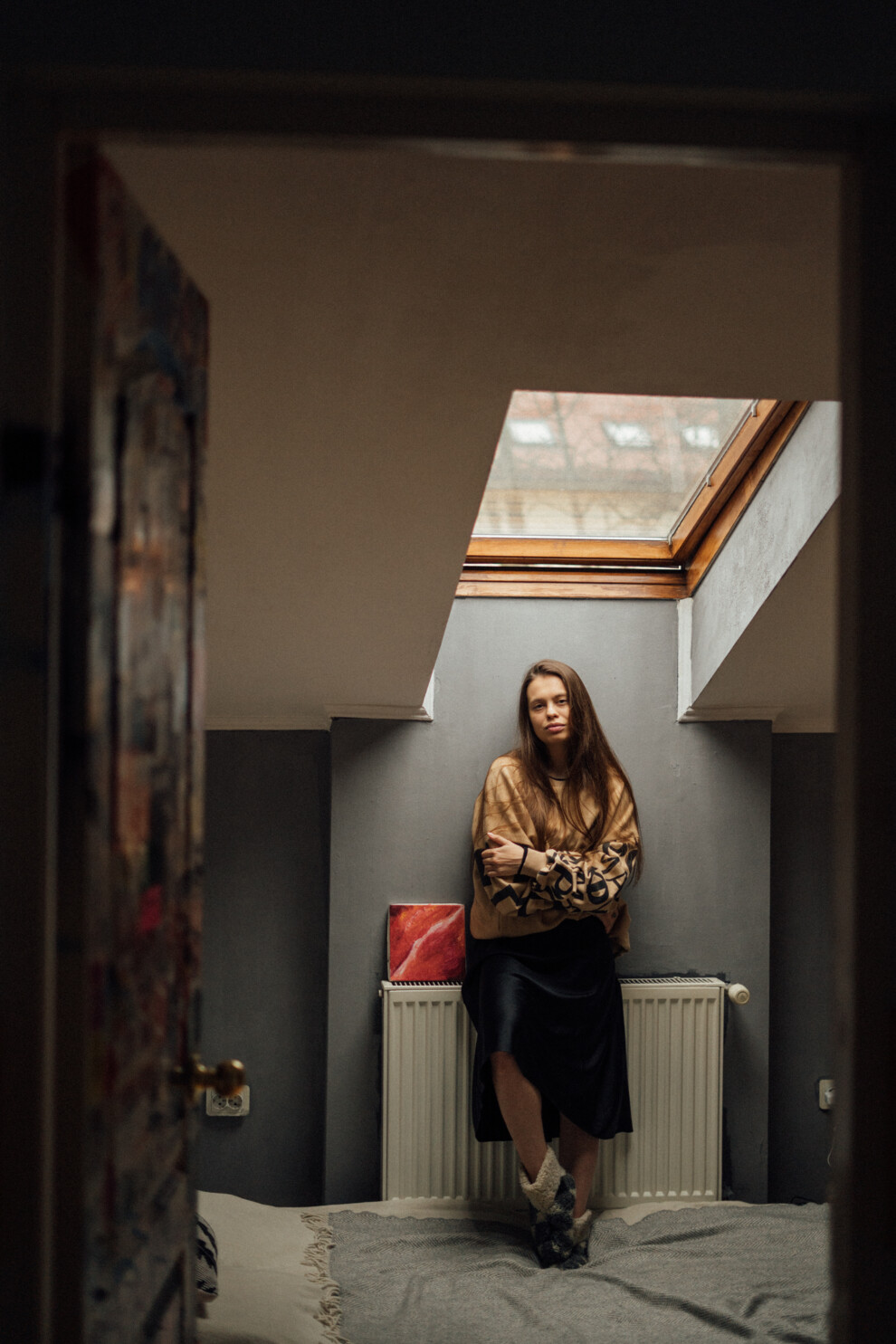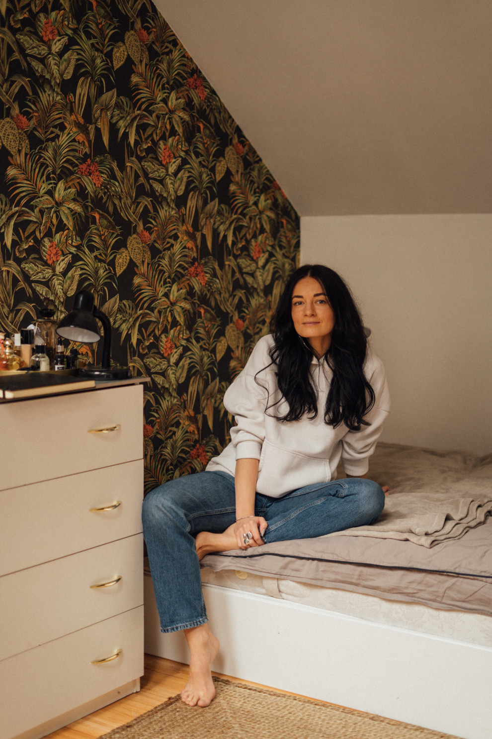 Напередодні війни домовилися з хлопцем: якщо в певний момент ми відчуємо тригер, це буде для нас вихідною точкою. Так і сталося, зранку 24-го забрали сім’ю й вирішили їхати. Я заздалегідь знала, які речі маю брати із собою. Здебільшого це потрібні речі, але були й ті, без яких просто не відчуваю себе. Тож з дому я взяла свій улюблений cвітшот з колаборації Marsala & Mystetskyi Arsenal, сатинову спідницю від Nuga. Ще улюблені каблучки бренду rara. Вони синьо-жовті. Вважаю їх своїм оберегом, бо ніколи не виходжу з дому без них. Та ці чудернацькі капці — подарунок з Карпат. Вони дуже рятували мене під час морозів.