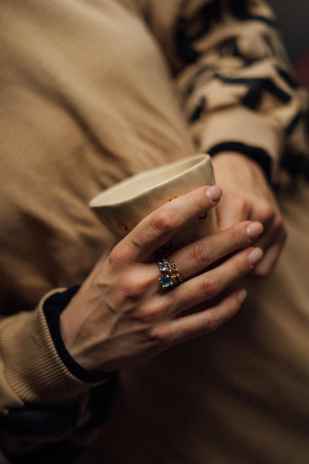 З особливих речей хотілося взяти весь дім. Це, звісно, було неможливо, тому я вирішила взяти полароїдні фото та найулюбленіші срібні прикраси. В мене дома ціла колекція каблучок, але я вирішила, що скоро повернуся додому, тому взяла ті, що носила останній тиждень до війни: earsandfingers, yastreb, kozar.