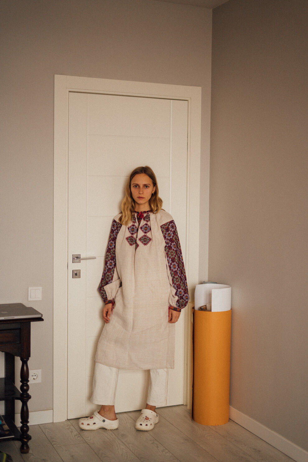 Ці речі, що на мені, – вишиванка та білі штани мені вже привіз із Харкова до Львова мій друг, бо, коли я їхала, то зовсім нічого не взяла з одягу, окрім пари футболок та треників. А коли зрозуміла, що мій друг може взяти із собою кілька моїх речей, – відразу знала, що хочу мати саме цю вишиванку. Вона неймовірна – її пошив зі 100-літньої тканини з косівського району Богдан Петричук, який колекціонує давнину. В ній я зустрічатиму нашу перемогу.