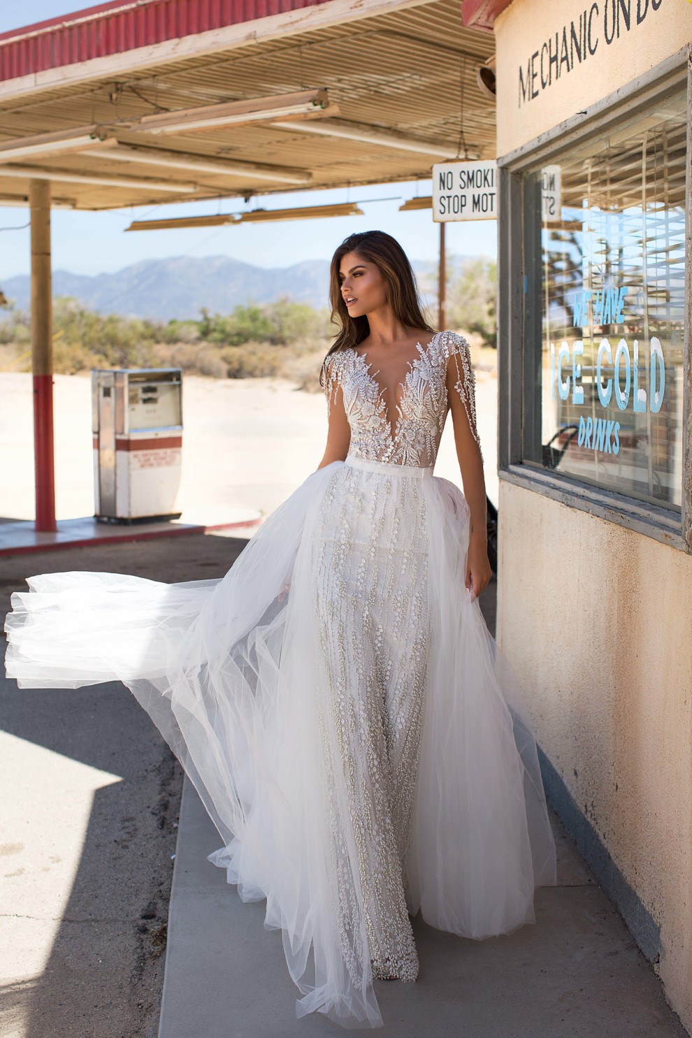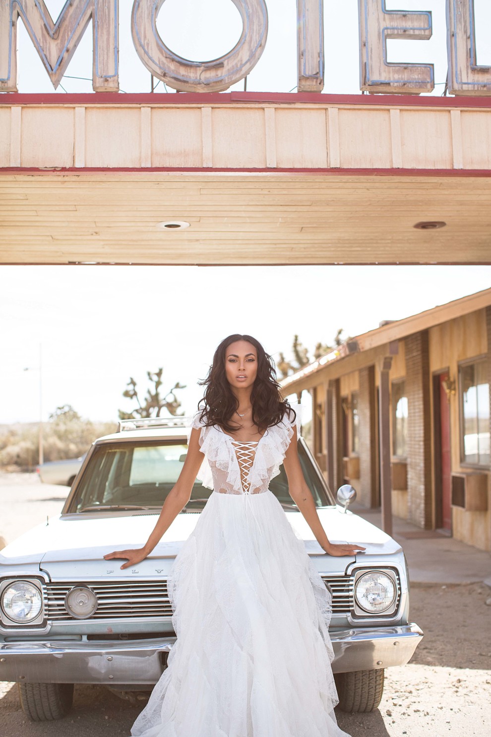 Тренд мати красиве, спортивне і сексуальне тіло вже давно став вирішальним для життя в Лос-Анджелесі. Саме тому локацією для зйомок обрали це місто. У сучасному світі на піку популярності натуральність, органічність і, звичайно, красиве жіноче тіло. Це і надихнуло на створення більш сміливого образу з глибокими V-подібними вирізами, відкритими плечима, напівпрозорими тканинами, оголеними ногами і підкресленими жіночими формами замість традиційного весільного закритого вбрання.