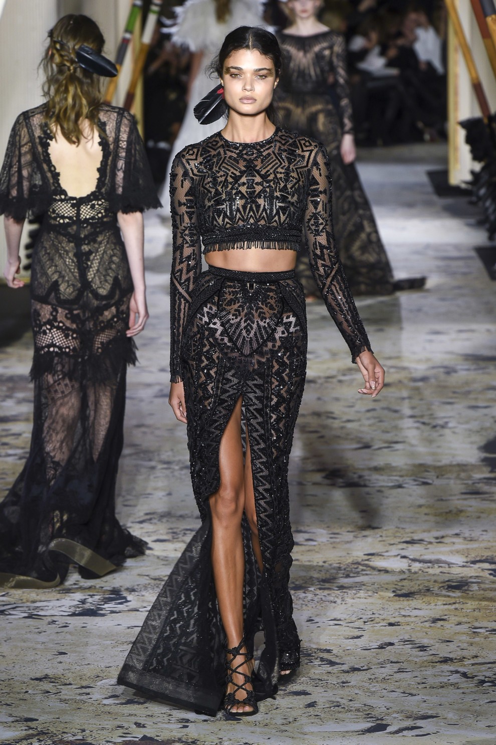 Кроп-топи можна вписати навіть у вечірній дрес-код. Як це зробити в останній кутюрній колекції показав ліванський дизайнер Зухаїр Мурад. Він наче розрізав вузьку сукню навпіл, і, таким чином, отримав ансамбль з топа і спідниці в підлогу.