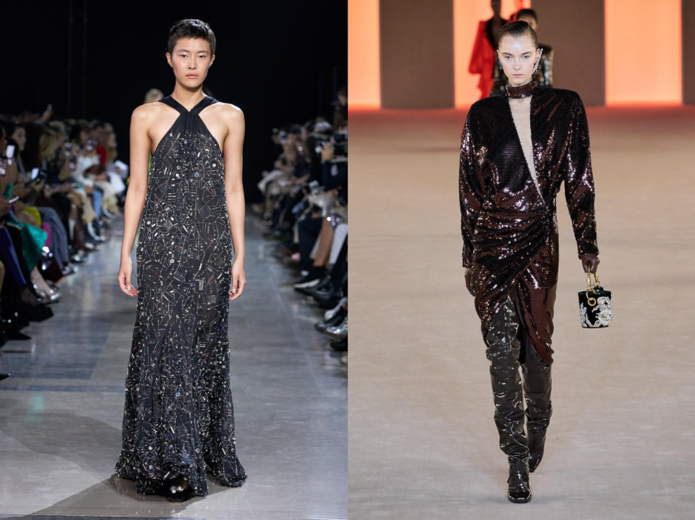 Rochas, весна-літо 2020; Balmain, осінь-зима 2020/2021Свою любов до сяйливих тканин дизайнери демонстрували ще в колекціях весна-літо 2020 року, але на осінньо-зимових показах ми побачили справжні розсипи каменів. Светри, максісукні, комбінезони й топи — речі в лелітках будуть актуальними ще не один сезон.