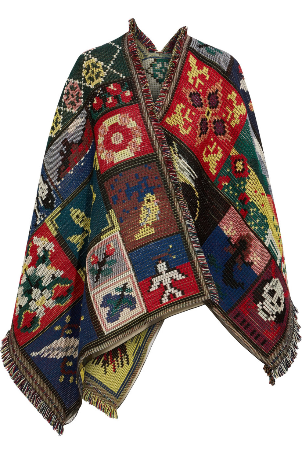 Чоботи AltuzarraНакидка Alexandr McQueen може носитися як самостійна верхній одяг, так і додатковий аксесуар. Її можна накинути на плечі поверх тонкого пуховика або куртки-косухи. Нагадує вона клаптеве укривало, однак при найближчому розгляді крім квітів і орнаментів стають помітні зображення черепів – символу Alexander McQueen.