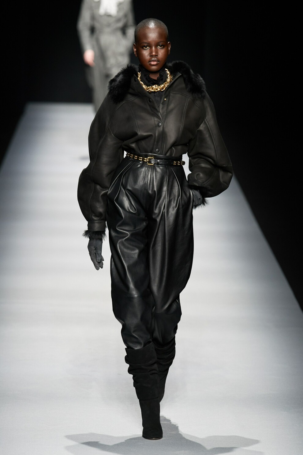 EtroНе варто забувати й про особливий тренд сезону — шкіряні речі. Штани з високою посадкою із защипами з матової шкіри стануть ідеальним осіннім спільником для стилістичних експериментів — надихнутися можна показом Alberta Ferretti. А для вечірніх виходів радимо звернути увагу на моделі, пошиті з оксамиту, шовку або вельвету.