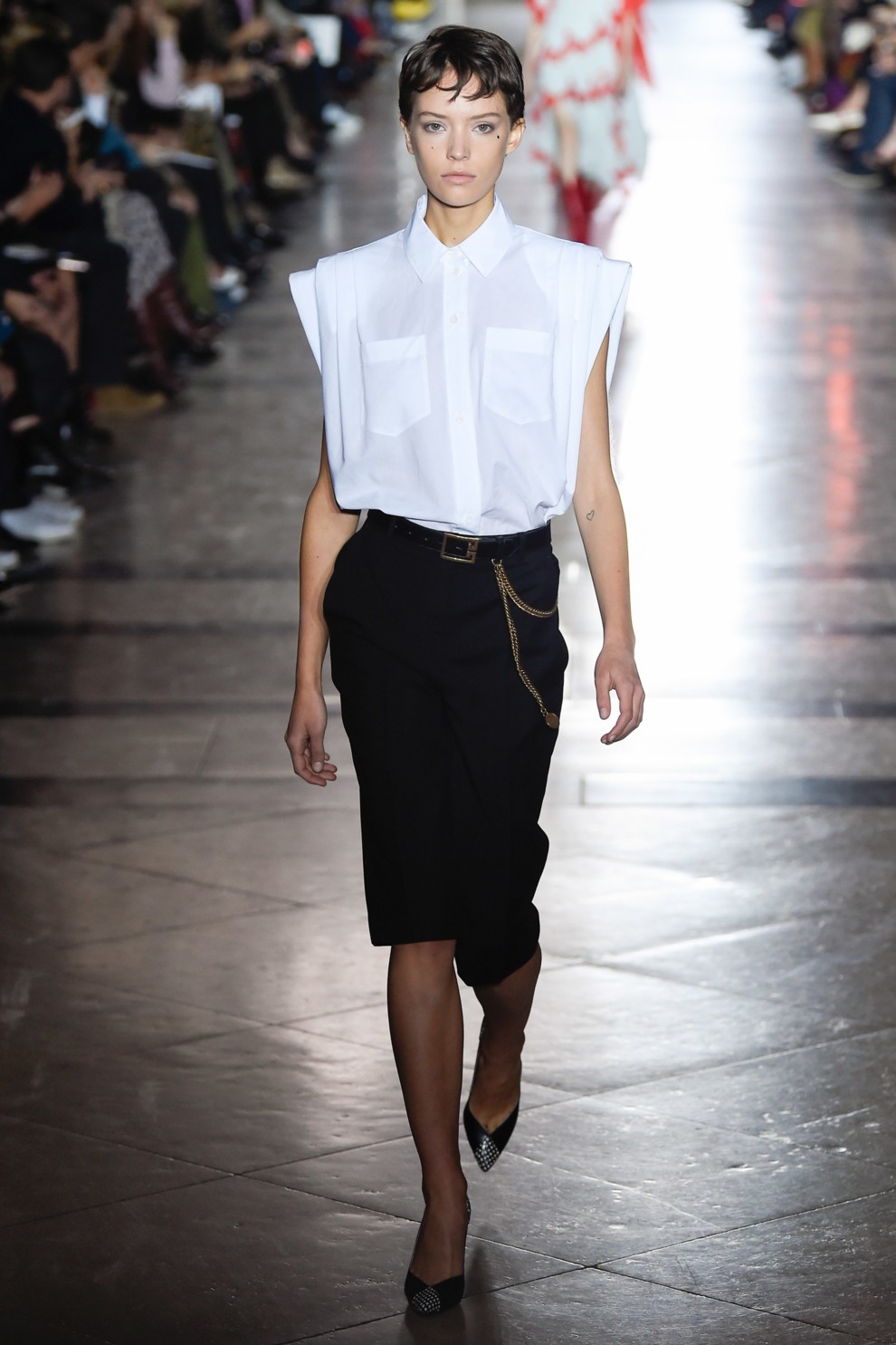 Balenciaga весна-літо 2018Подібний силует хороший насамперед тому, що не приховує жіночності, але, при цьому, доречний в різних ситуаціях. Наприклад, Клер Вейт Келлер у весняно-літній колекції Givenchy демонструє абсолютно офісне поєднання, а Ізабель Маран, граючись з тими ж пропорціями, вже створює образ ідеальний для вечірки.