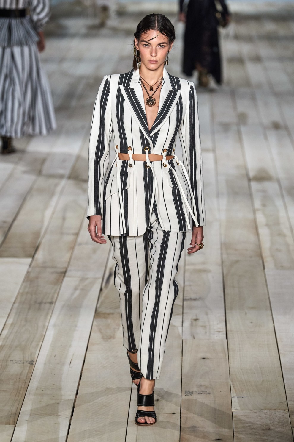 BalmainРечі з вертикальними смужками мають декілька переваг. По-перше, це модний тренд цієї весни, а, по-друге, вони вдало "витягують" силует і моделюють фігуру. Тож за стильним брючним костюмом потрібно збиратися на шопінг до Alexander McQueen, вільні штани в чорно-білу смужку на всі випадки життя можна придбати у Stella McCartney, а утилітарну спідницю із заходом — у Sacai.